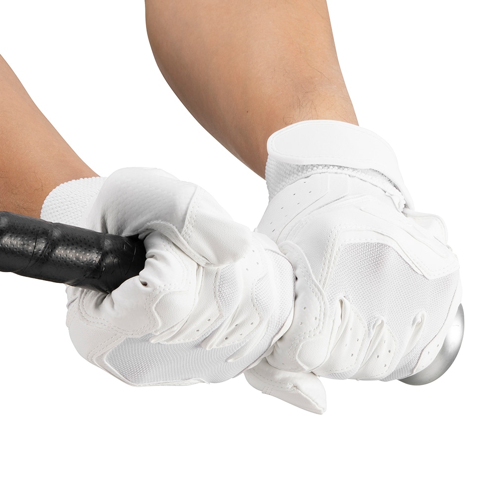 バッティング手袋は、汗などによるグリップのすべりを防ぎ、バットをしっかり握ることができます。