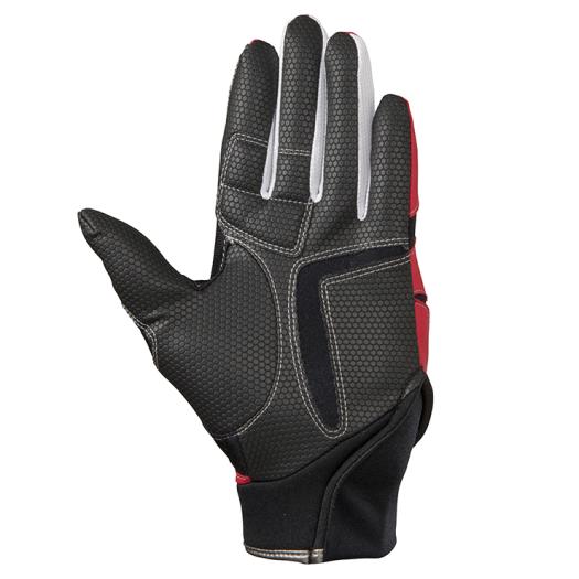 手の平側・手甲側の双方に伸縮ニットを採用することで、JSからJLまですべてのサイズに対応しています。