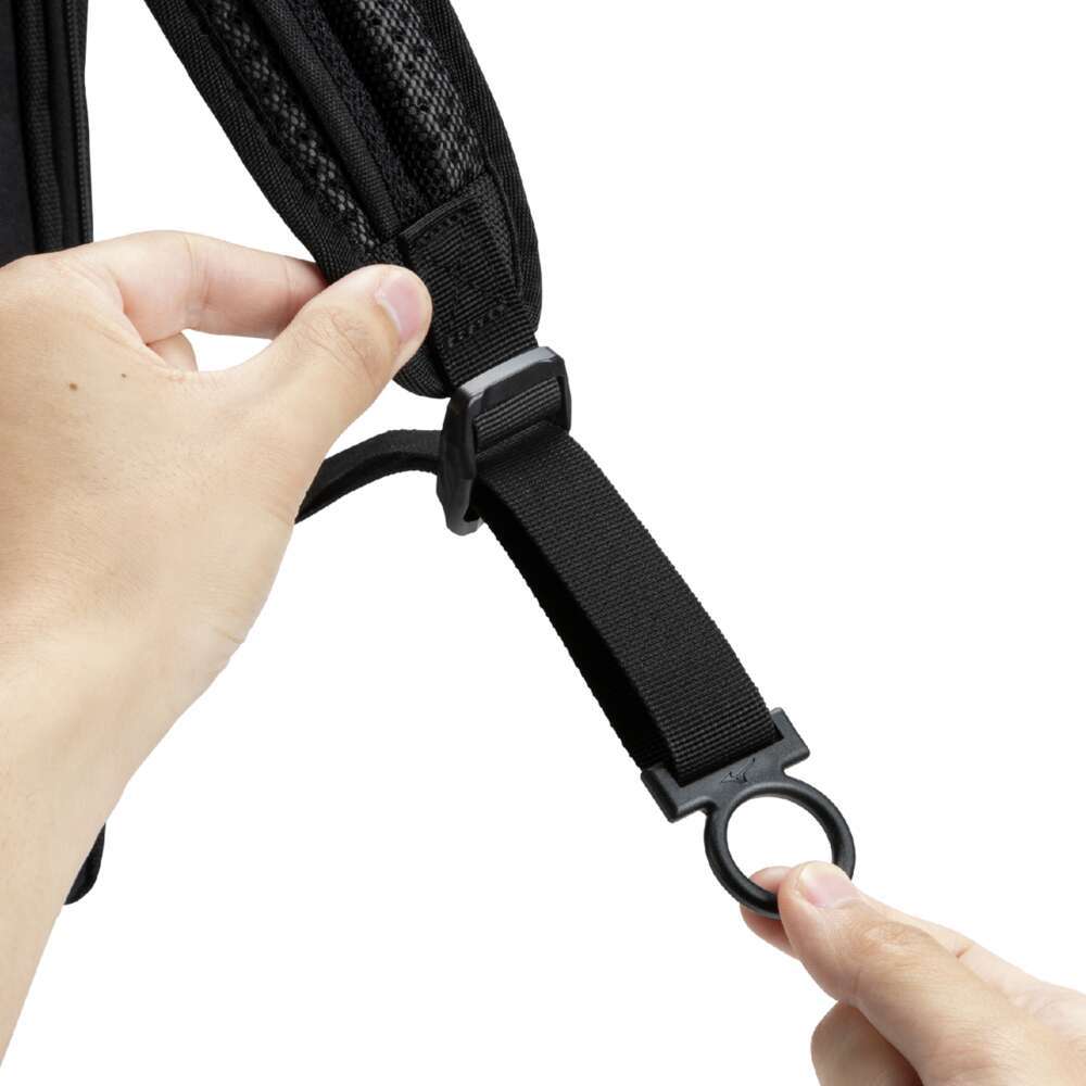バックパックのショルダーの長さを、背負ったまま簡単に調整できます。