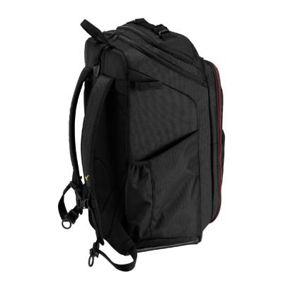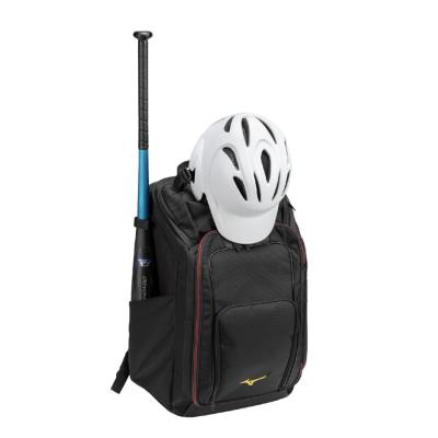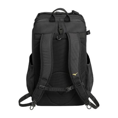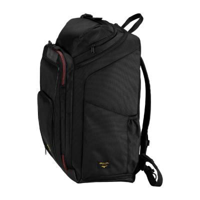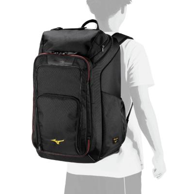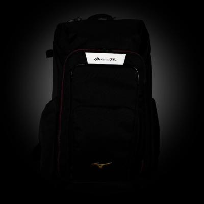 ■上部小物ポケット。■フェンスフック搭載。■中身は上部グラブ、中段着替え、底部はシューズ収納可能。■前身フタ裏にはサングラス、キャップの収納。■水に強い底合成皮革。■高級感ある再起反射ミズノプロネーム台。