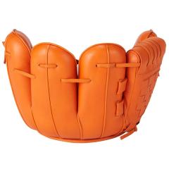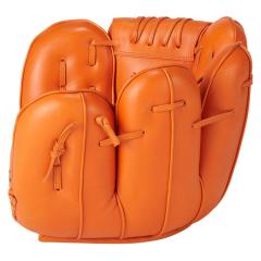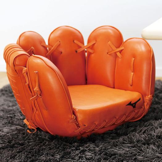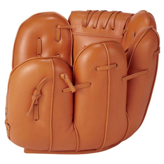実際のグラブにも使われる牛革を、家具に最適になるようアレンジして椅子に仕上げました!椅子に最適な仕上げを施し、座り心地も良し。グラブ形状と相まって、まるでグラブに包み込まれる白球のような感覚も味わえます。