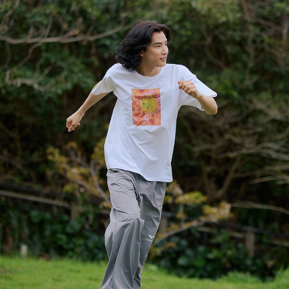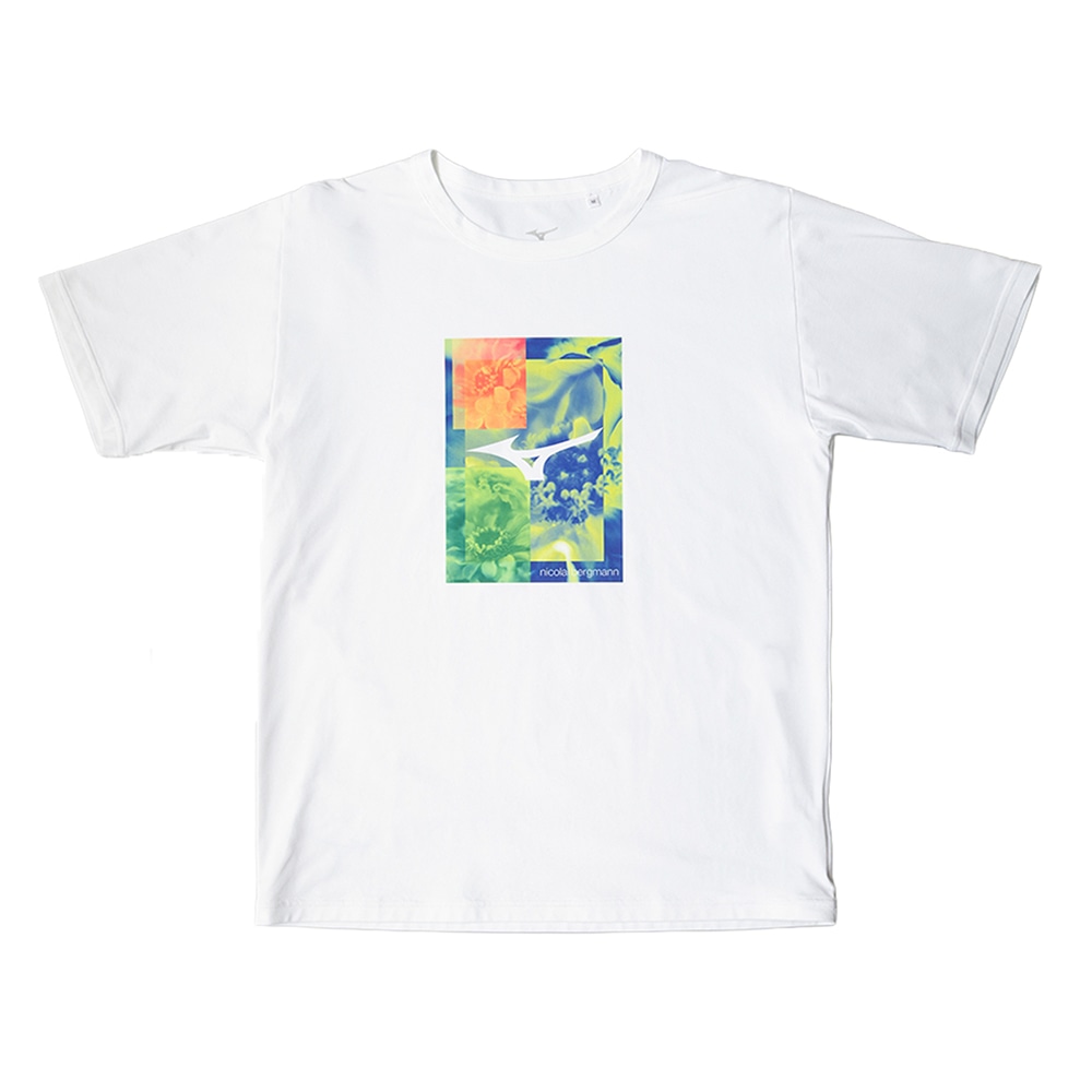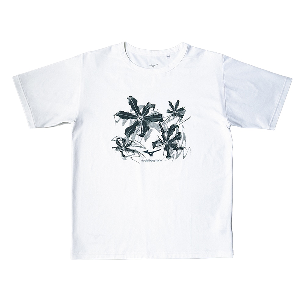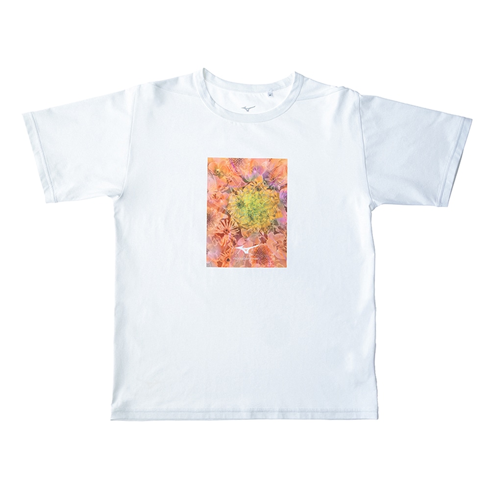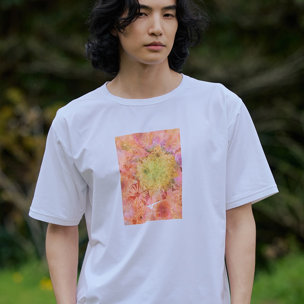 ■71カラー:花が次々と咲き誇り、長い間美しく咲くジニアと、歴史あるミズノをリンクさせたフロントのフラワーデザインが爽やかで印象的なTシャツ。