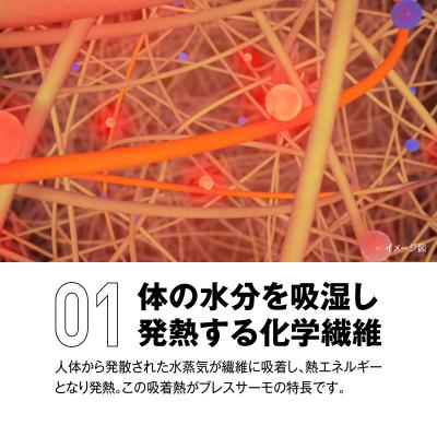 体からの水分を吸収、その吸着熱を利用して温度を上昇させる発熱素材。
