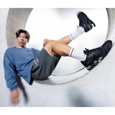 ■無機質な線が幾重にも重なり、畝りとなって縦横無尽に駆け巡り、洗練された都市を舞台に、アーバンスポーツの本質と、ミズノブランドの象徴であるランバードマークを融合し、アウトマークとして表現。