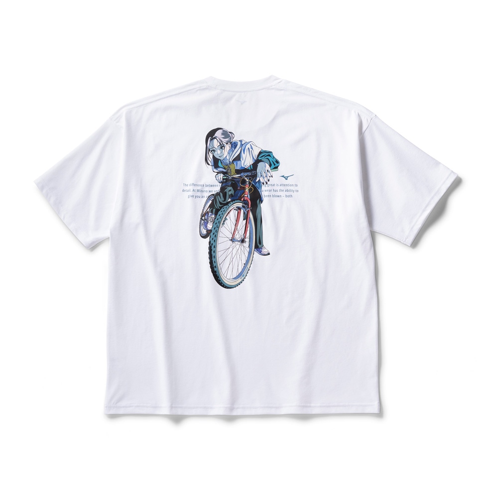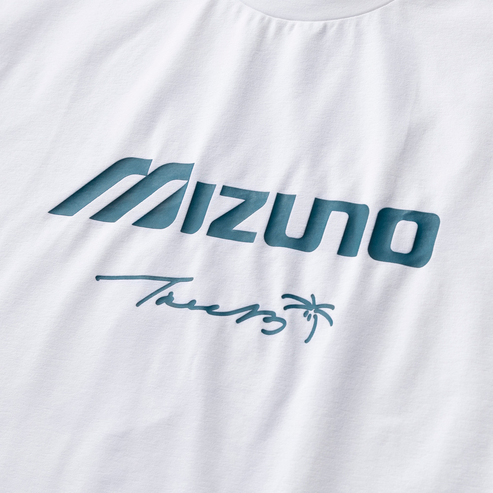 ■胸の「MIZUNO×tree13」のロゴ、90年代シティポップカルチャーが表現されたバックプリントが目を引くデザインに。