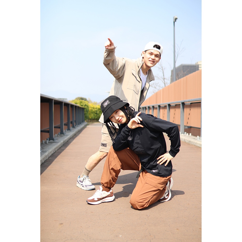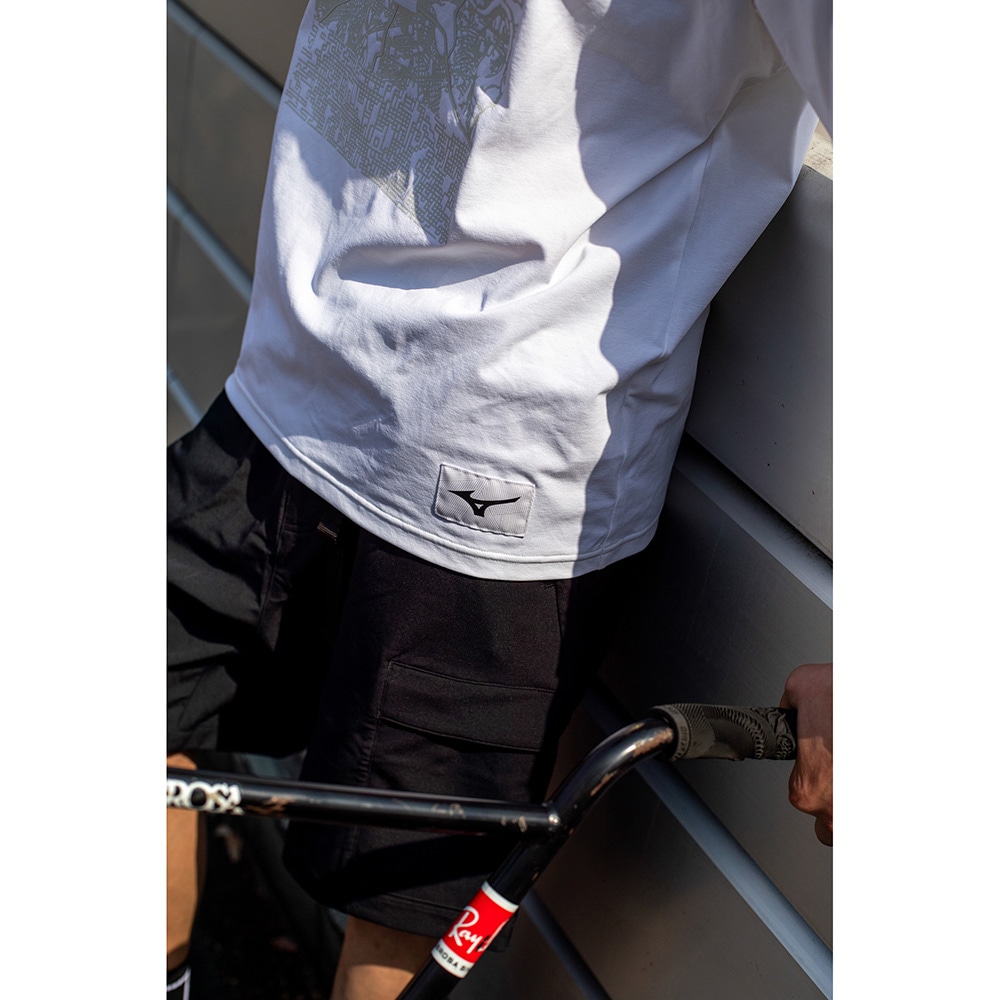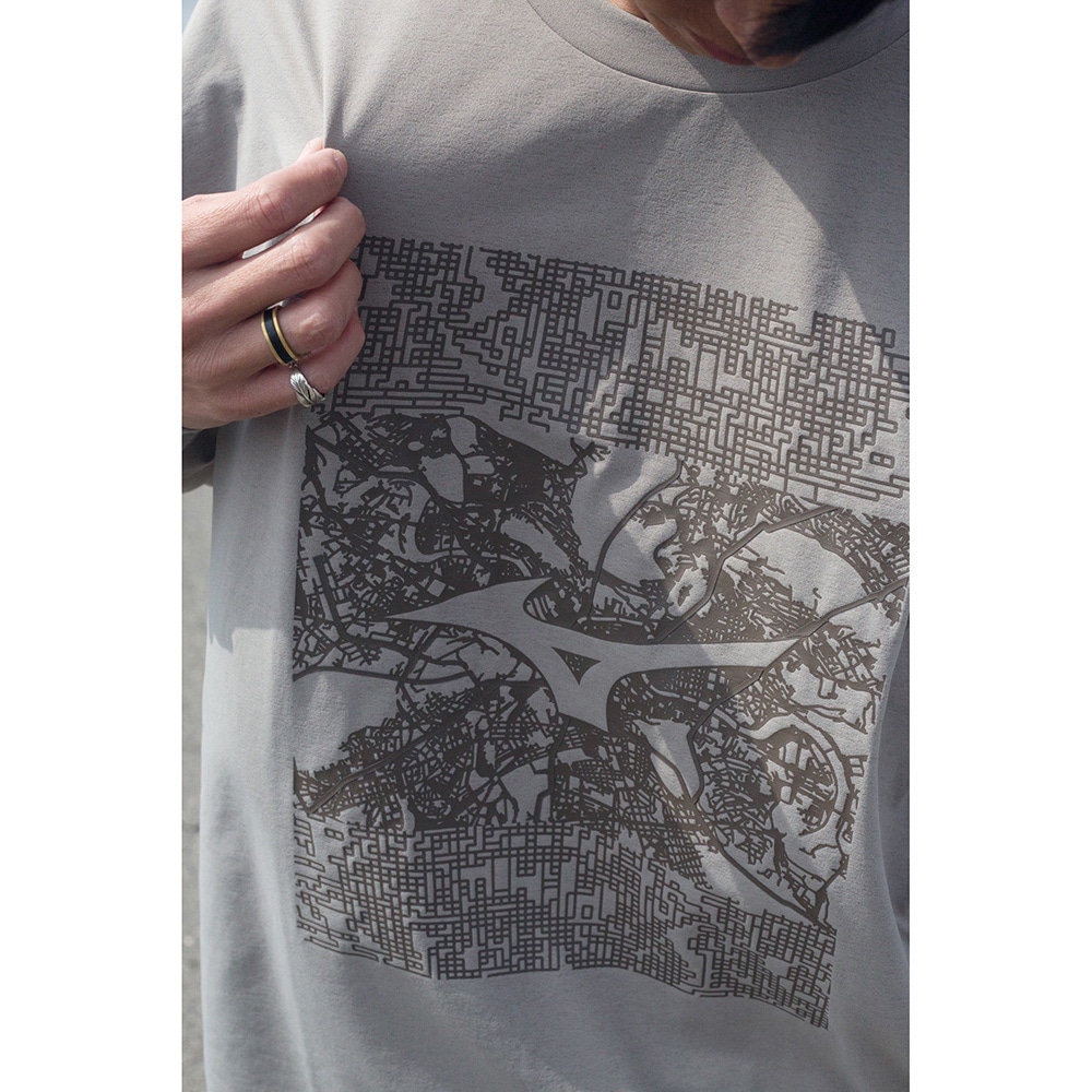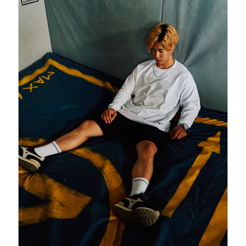 無機質な線が幾重にも重なり、畝りとなって縦横無尽に駆け巡り、洗練された都市を舞台に、アーバンスポーツの本質と、ミズノブランドの象徴であるランバードマークを融合し、アウトマークとして表現。