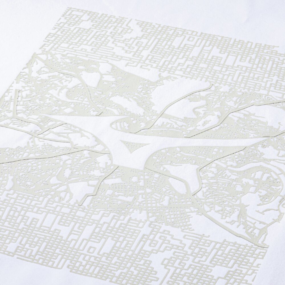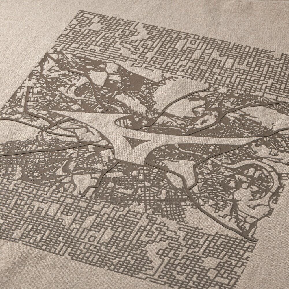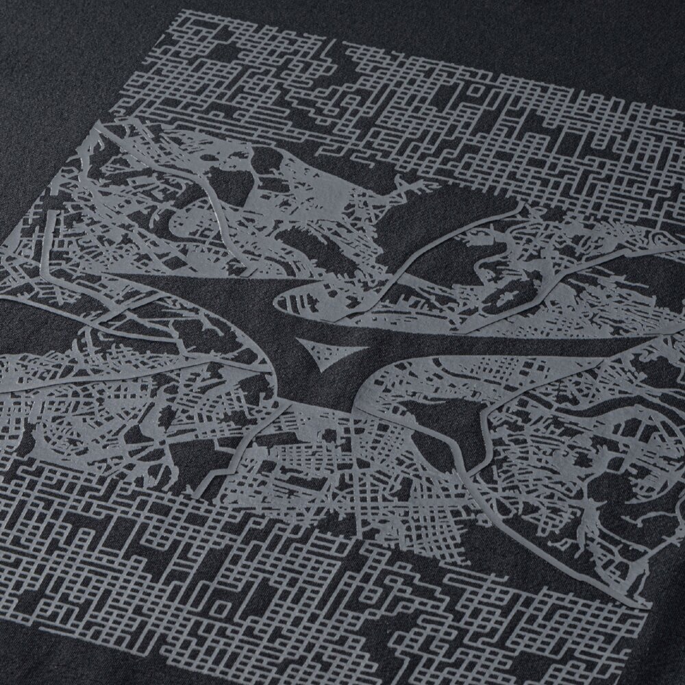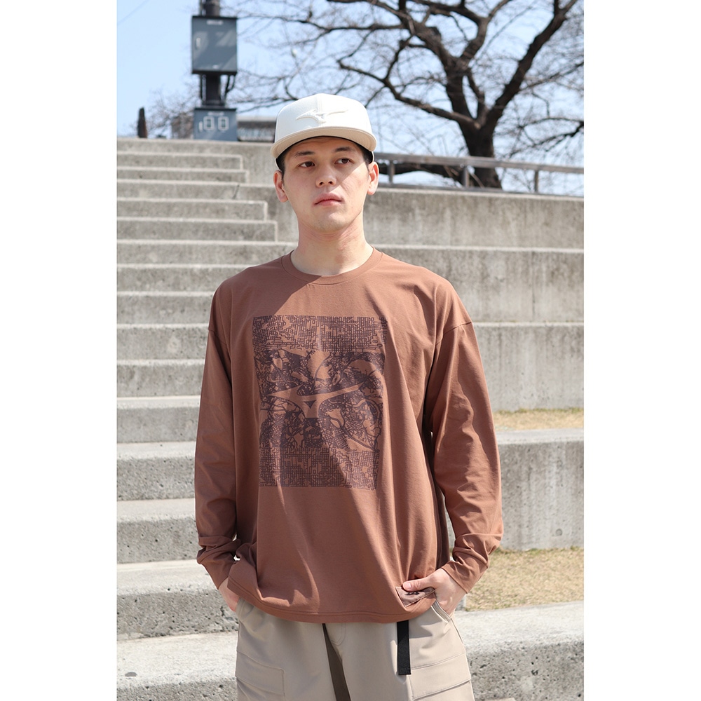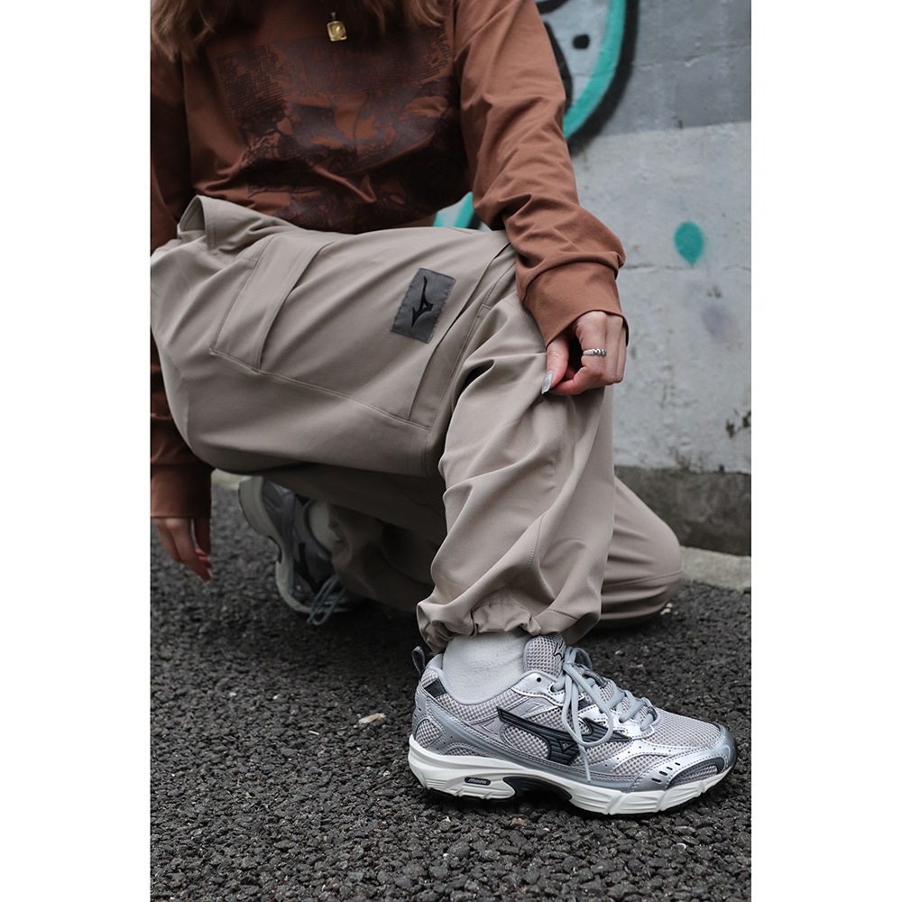 無機質な線が幾重にも重なり、畝りとなって縦横無尽に駆け巡り、洗練された都市を舞台に、アーバンスポーツの本質と、ミズノブランドの象徴であるランバードマークを融合し、アウトマークとして表現。