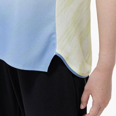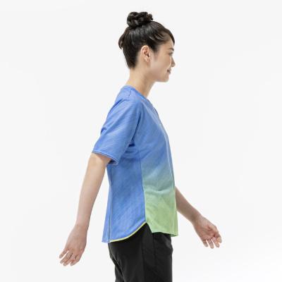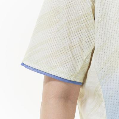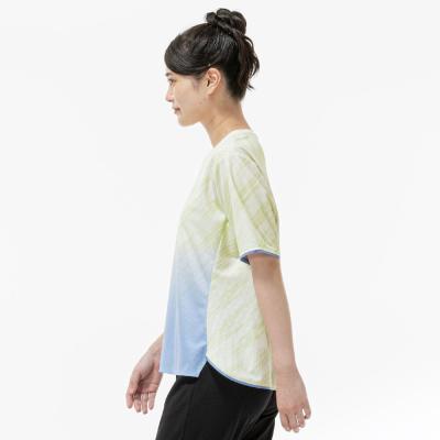 ■汗をかいてもサラサラ!と人気のドライエアロフローを使用した少しワイドなシルエットの総柄グラデーションプリントTシャツ。