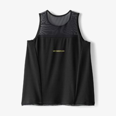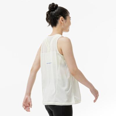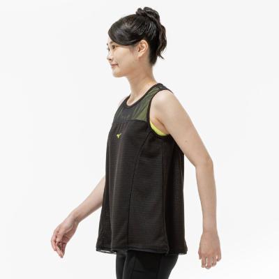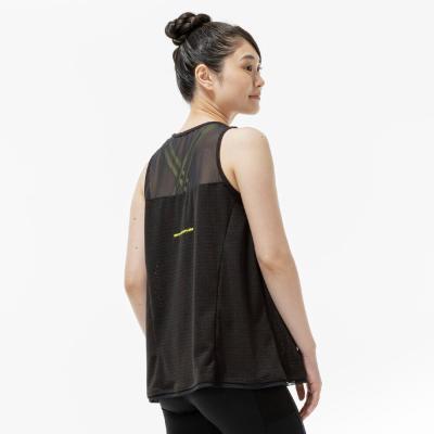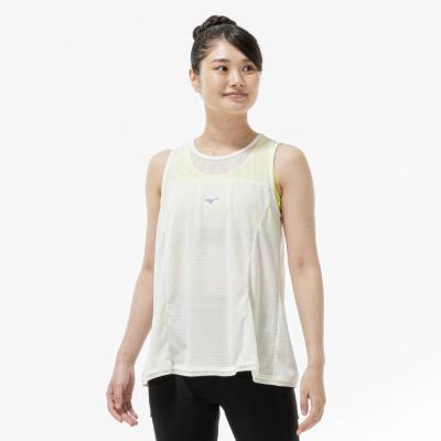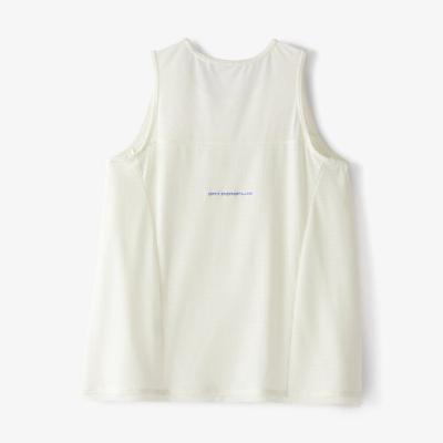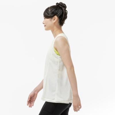 ■シアー素材とドッキングし、暑い夏に涼し気に着用いただけるノースリーブTシャツ。
