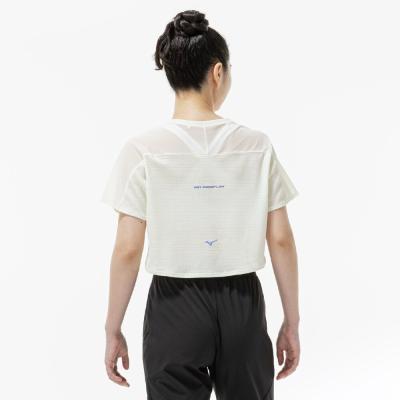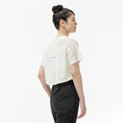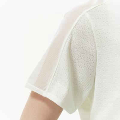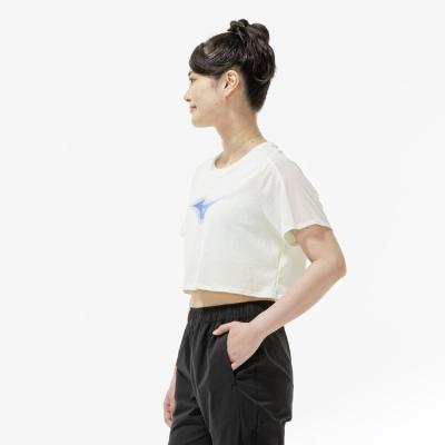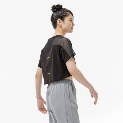 ■シアー素材とドッキングし、暑い夏に涼し気に着用いただけるクロップドTシャツ。