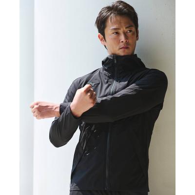 ■ストレッチ性と撥水性が特徴の素材。ストレッチ性に優れ、動きをスムーズにし不快な、ツッパリ感を軽減した設計を実現。