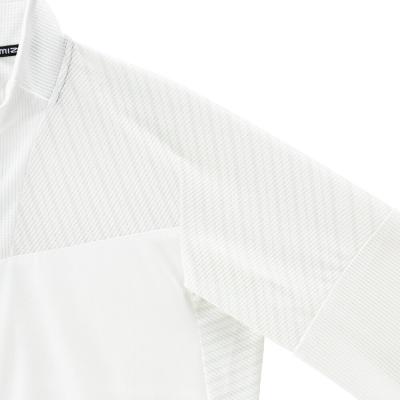 ■ドライエアロフロー生地を上身頃、両脇下部分に使用する事で汗をかいた状態でも通気性を保ち快適性をキープ。