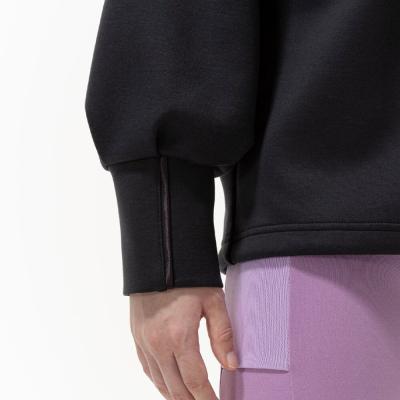 ■フロントと後身のパール調ランバードマークとボリュームスリーブが女性らしいスウェットアイテム。