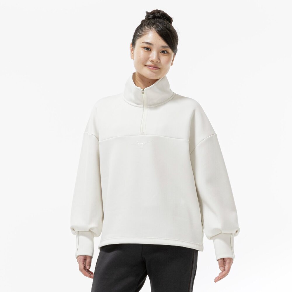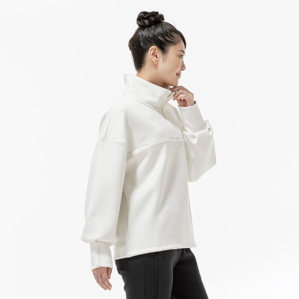 ■快適な着心地と動き易さを追求した、パウダリーでまろやかな肌触りのいいハーフジップスウェット。