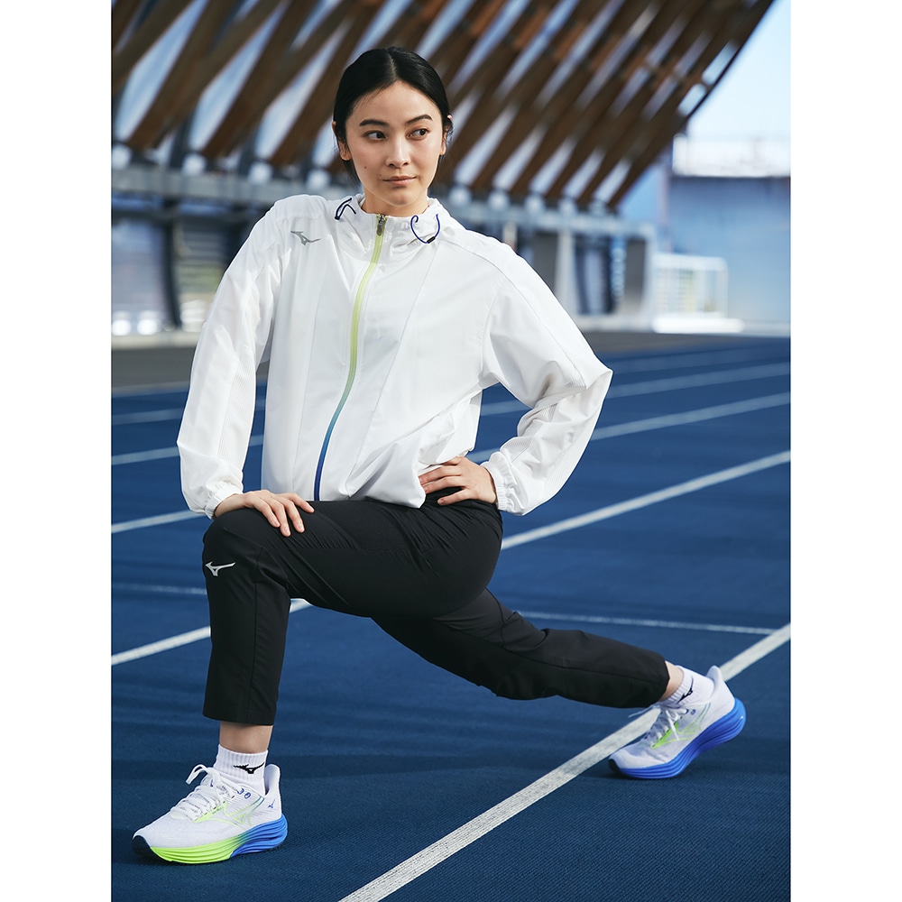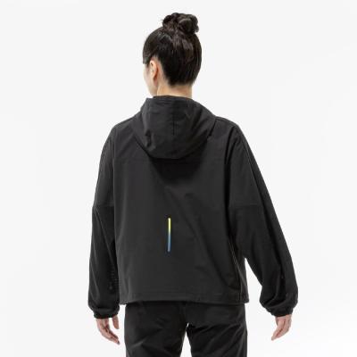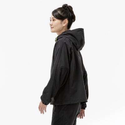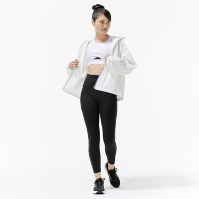 ■軽やかで動きやすく、トレーニング時スポブラタイツやTシャツの上にさっと羽織るのに最適なフーディジャケット。