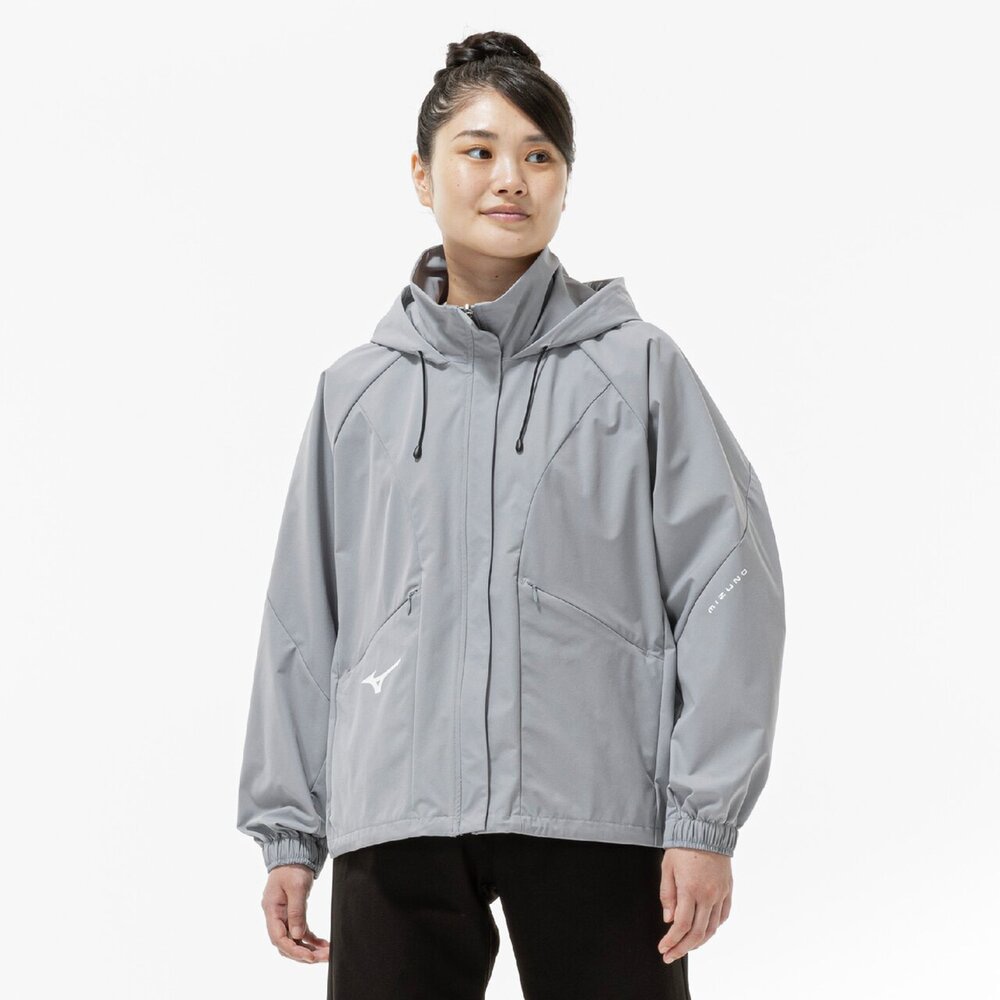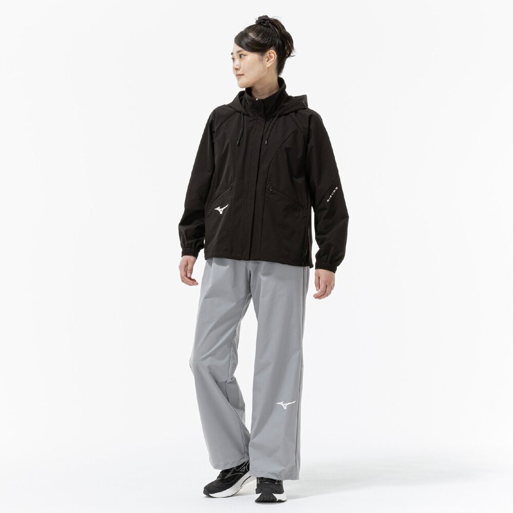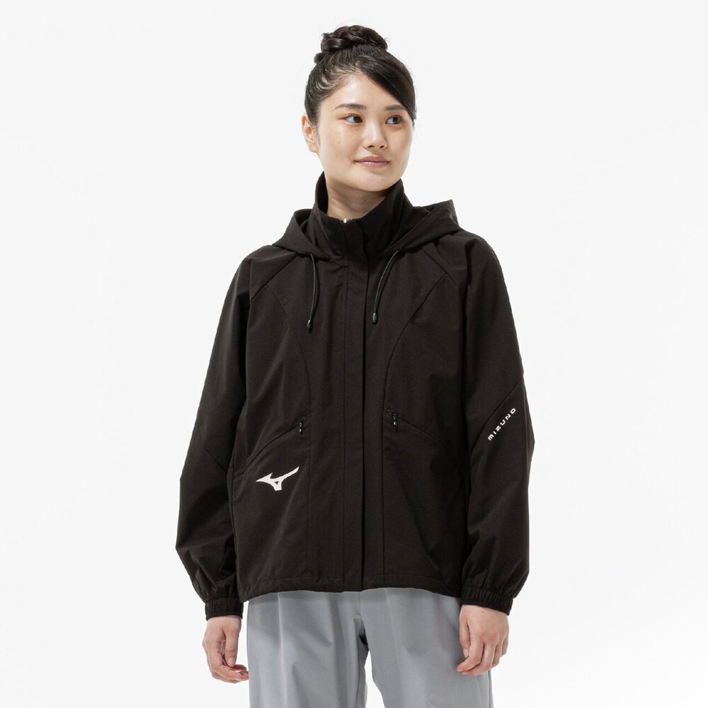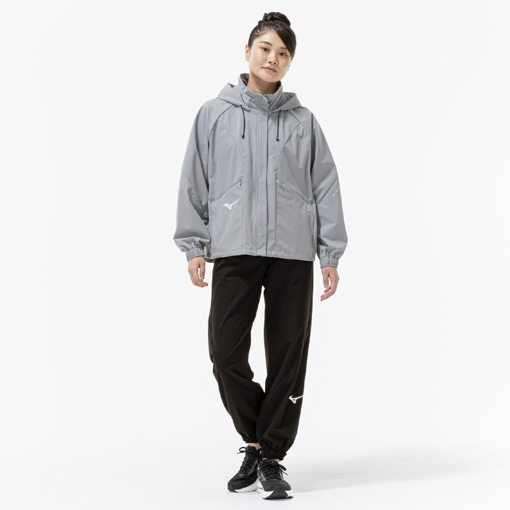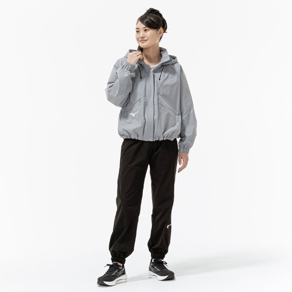 ■右ポケット下のパール調ランバードマークと左袖のmizunoロゴが女性らしく、裾には絞れるアジャスター付きでシーンやスタイルに合わせた着こなしが可能。