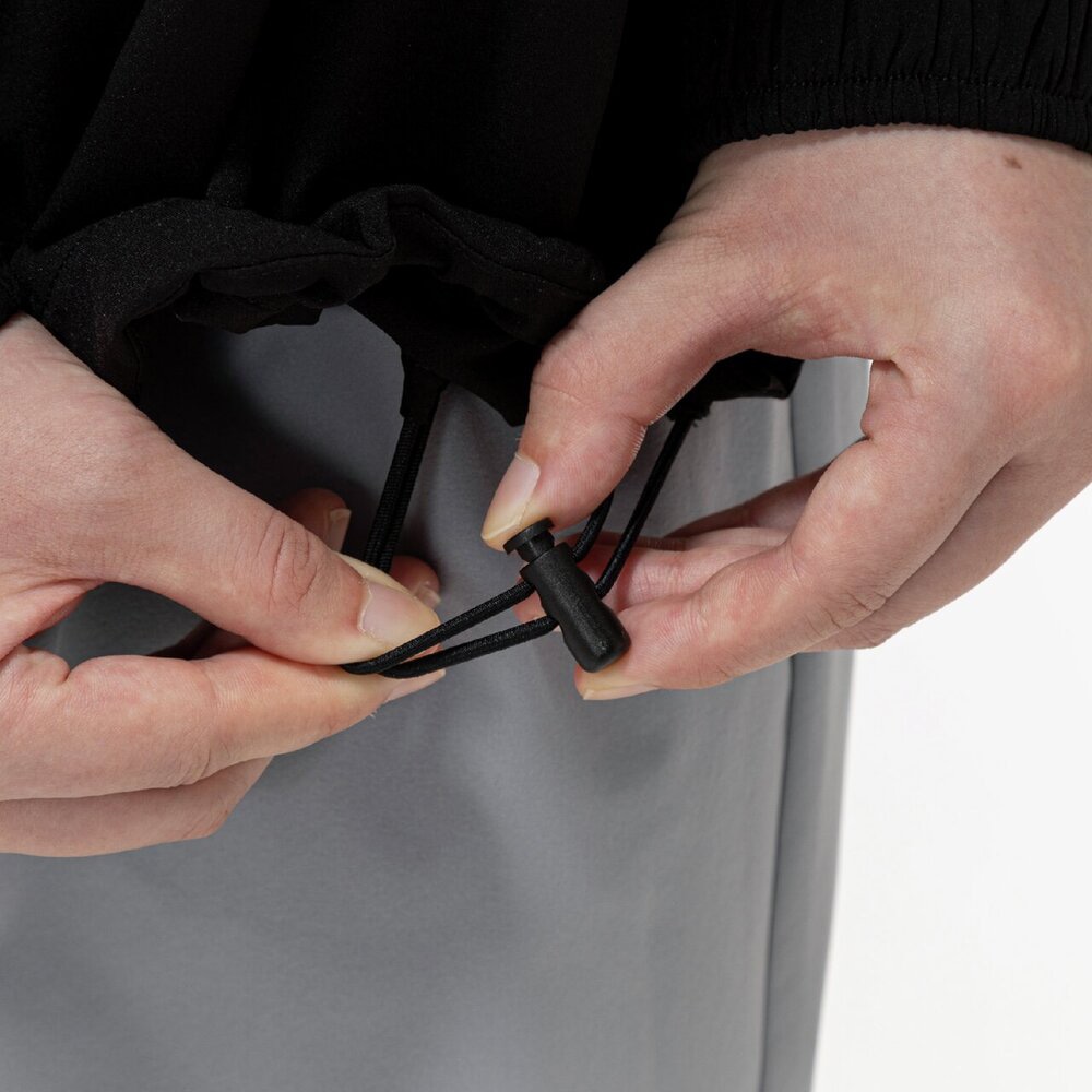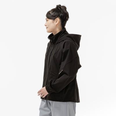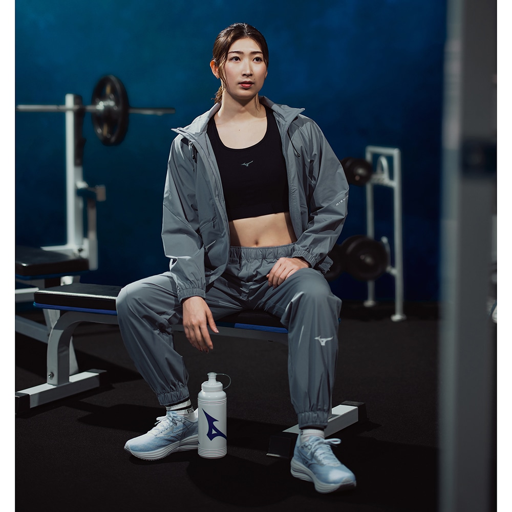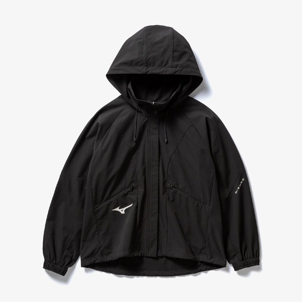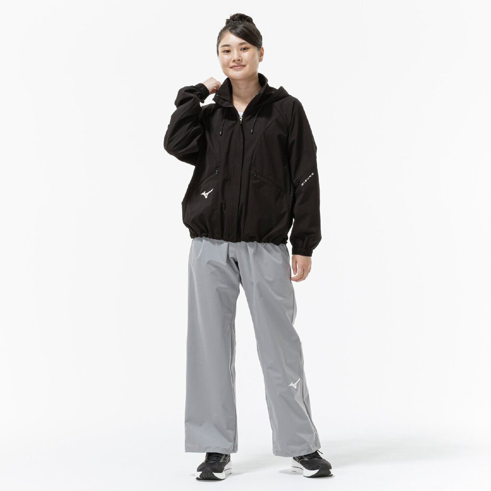 ■右ポケット下のパール調ランバードマークと左袖のmizunoロゴが女性らしく、裾には絞れるアジャスター付きでシーンやスタイルに合わせた着こなしが可能。
