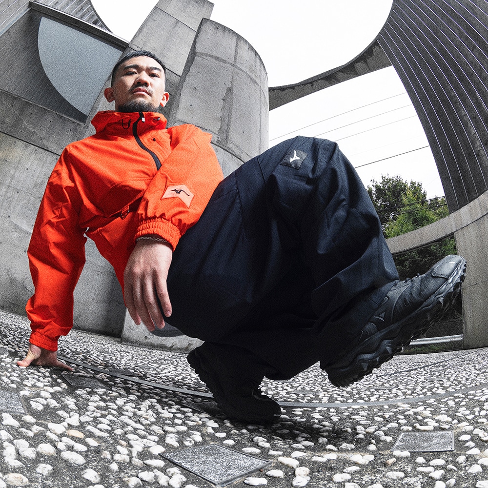■無機質な線が幾重にも重なり、畝りとなって縦横無尽に駆け巡り、洗練された都市を舞台に、アーバンスポーツの本質と、ミズノブランドの象徴であるランバードマークを融合し、アウトマークとして表現。