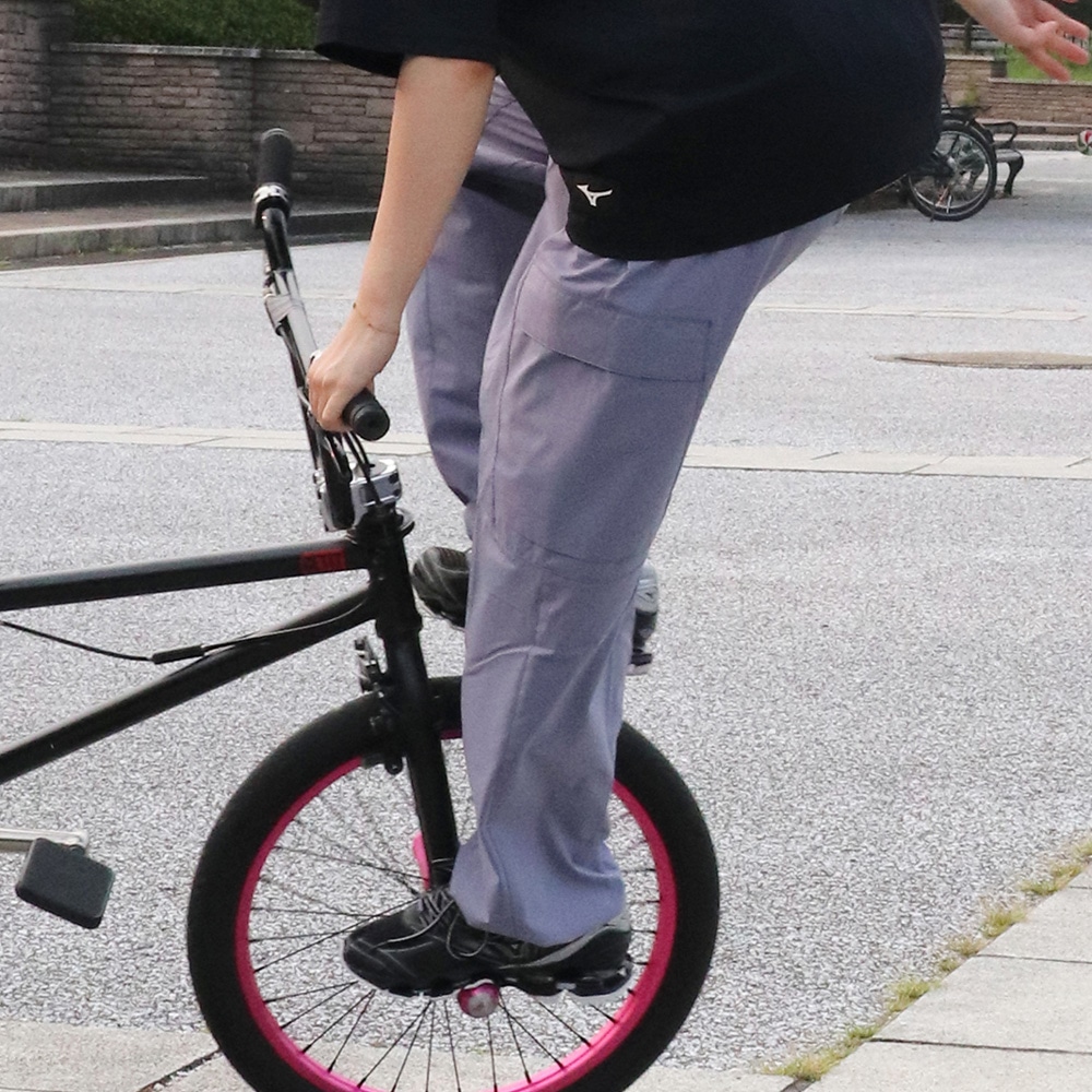■特徴的なポケット、裾ゴムスピンドルによる調整可能な仕様。