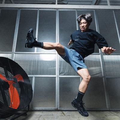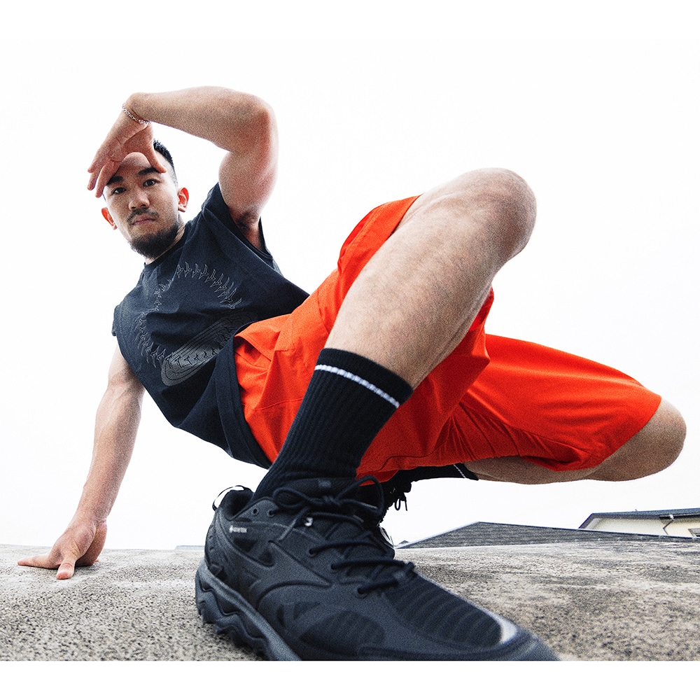 ■無機質な線が幾重にも重なり、畝りとなって縦横無尽に駆け巡り、洗練された都市を舞台に、アーバンスポーツの本質と、ミズノブランドの象徴であるランバードマークを融合し、アウトマークとして表現。