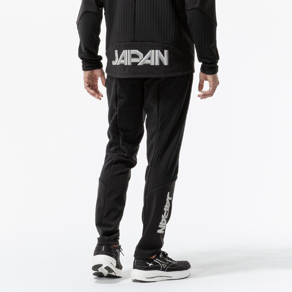 ■右脚JAPAN転写マークは再帰反射で『炎』グラフィックがブルーに浮かび上がる。
