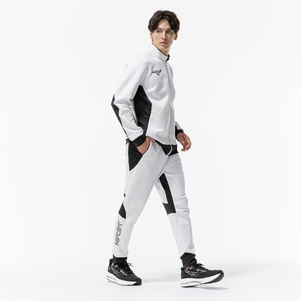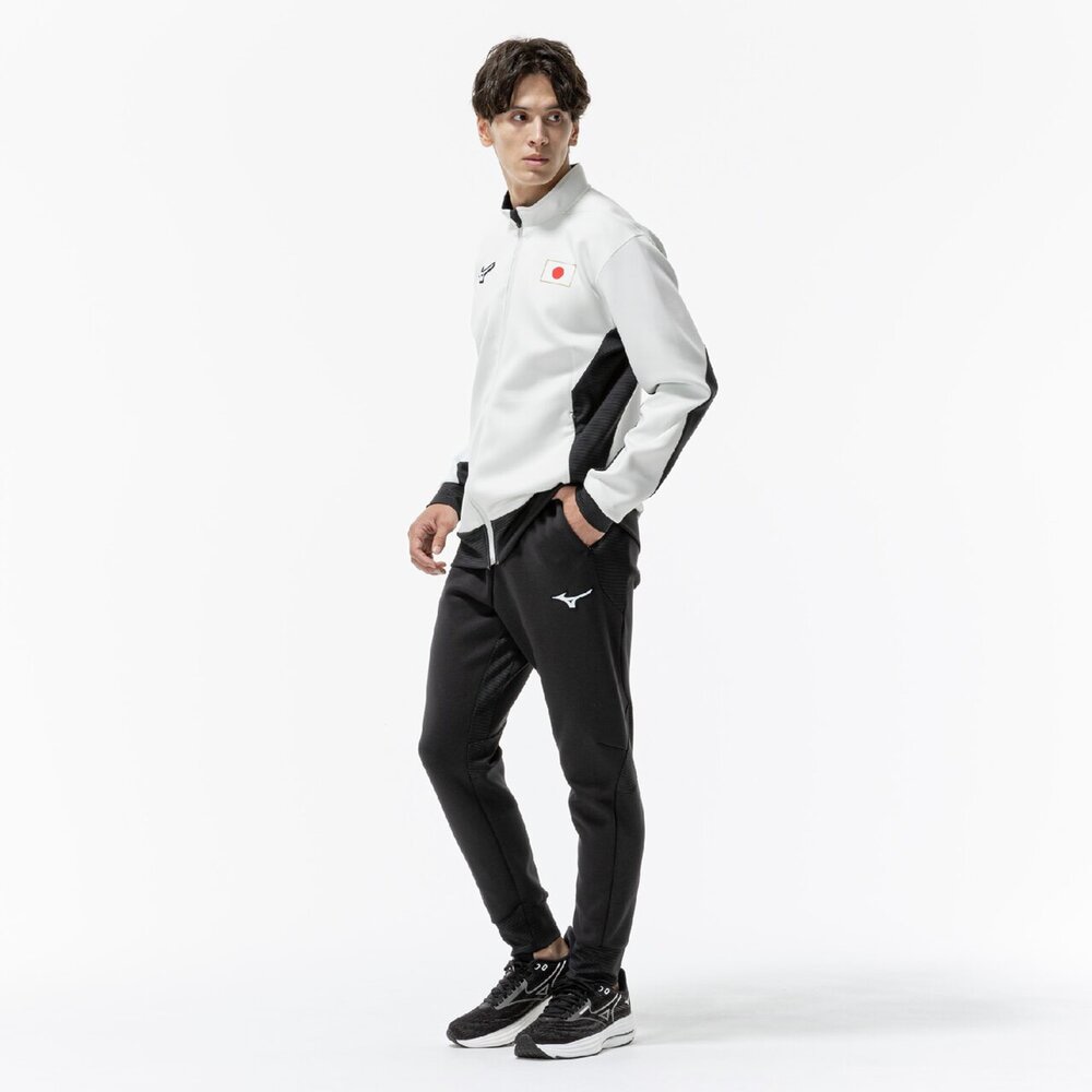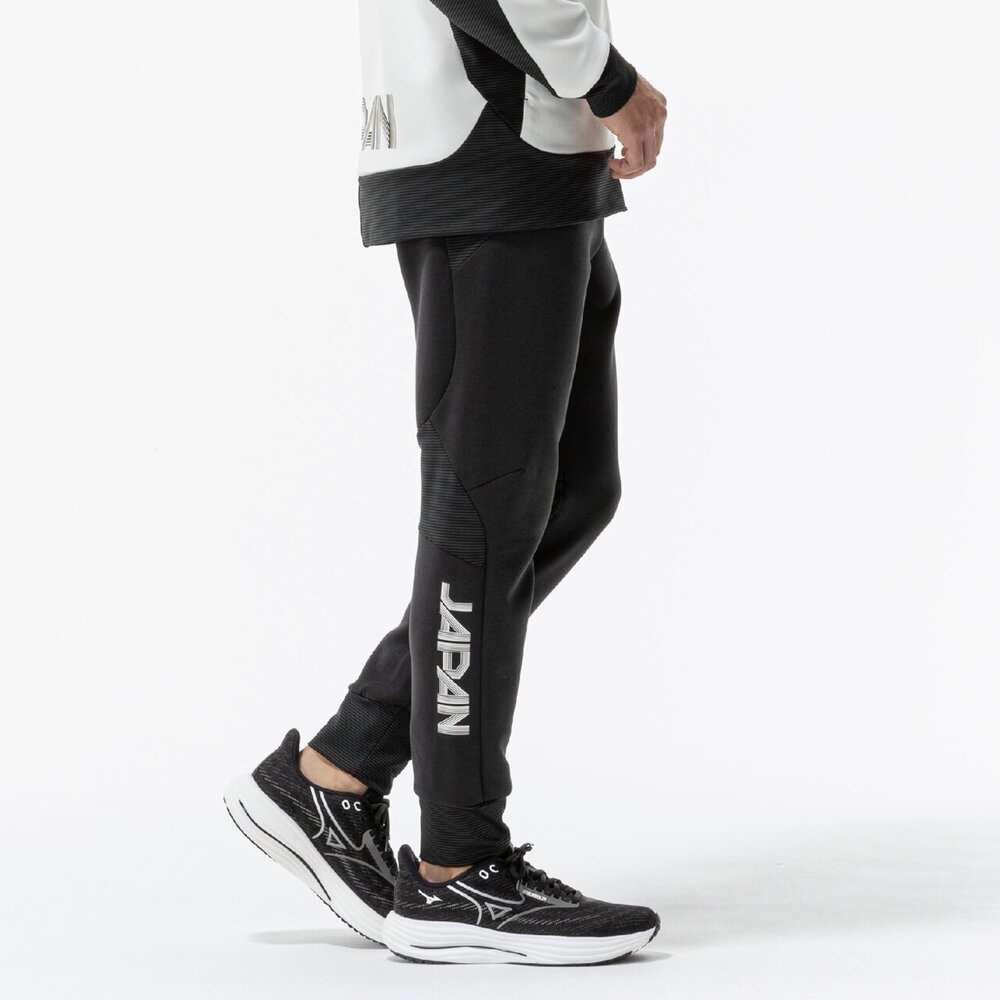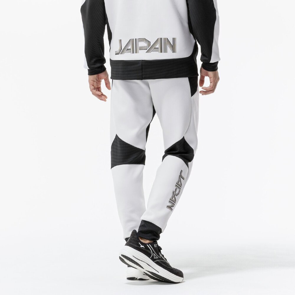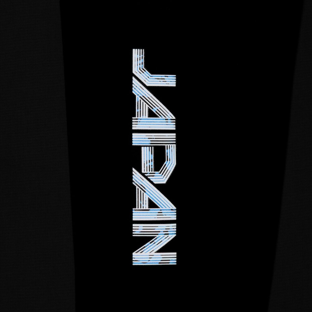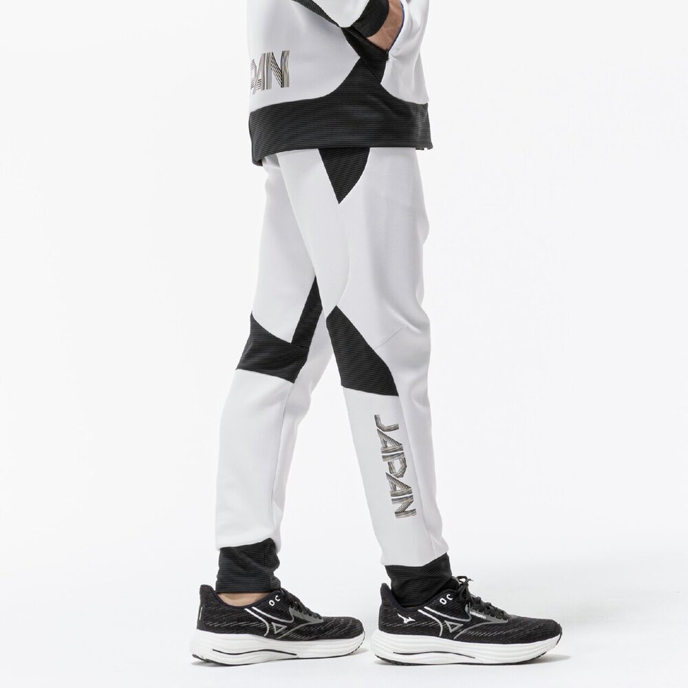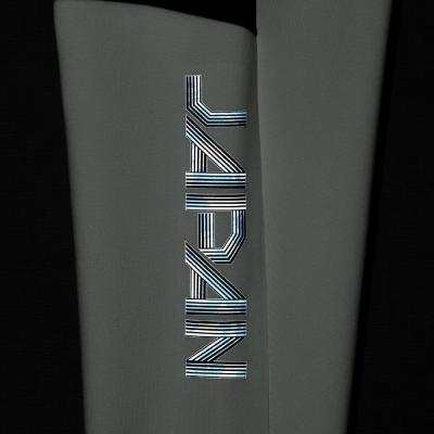 ■右脚JAPAN転写マークは再帰反射で『炎』グラフィックがブルーに浮かび上がる。
