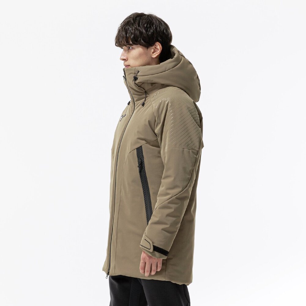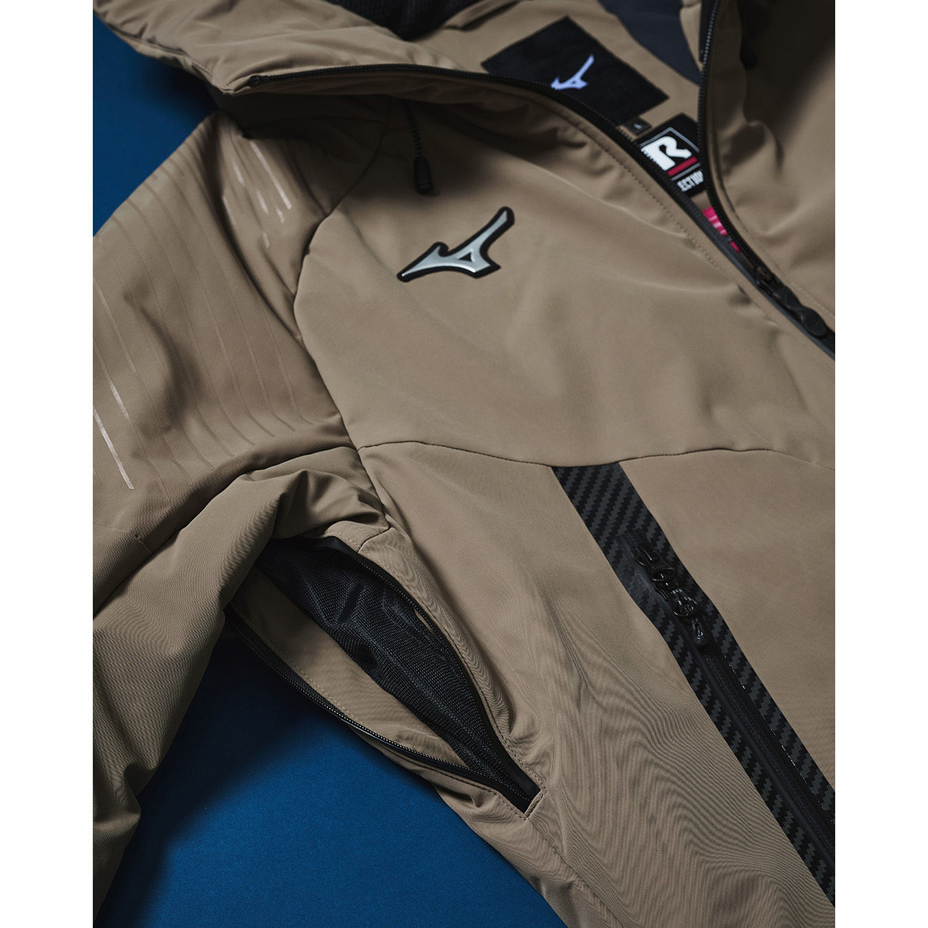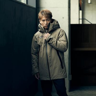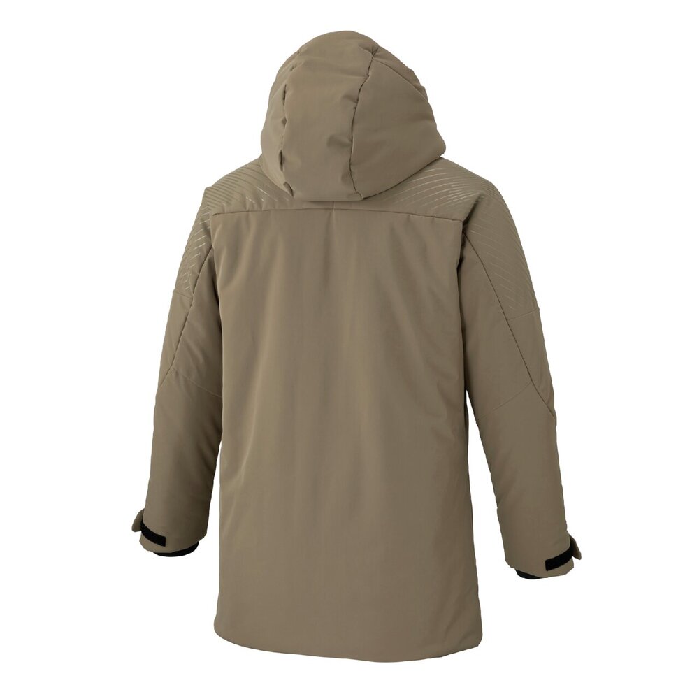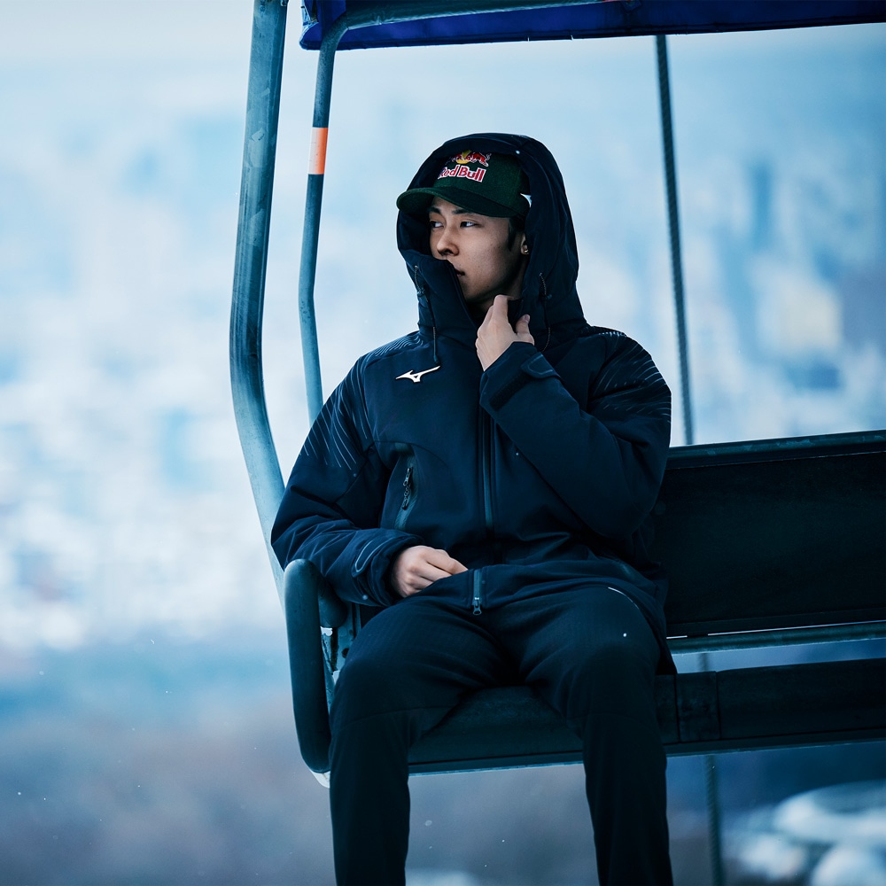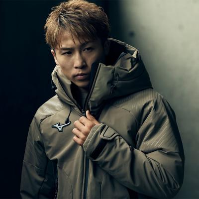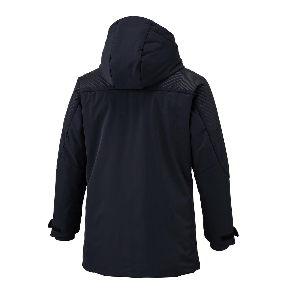 | 素材 | 表地、本体・フード:ナイロン85%、ポリウレタン15% 内衿・フード裏:ポリエステル100% 裏地:ポリエステル100% 中綿、本体:ポリエステル83%、合成繊維(ブレスサーモ)17% フード、内衿:ポリエステル100% インナーカフス部:ポリエステル92%、ポリウレタン8% |