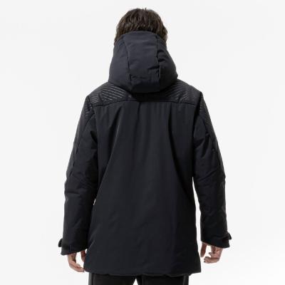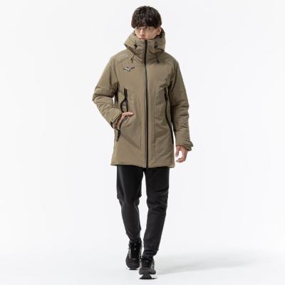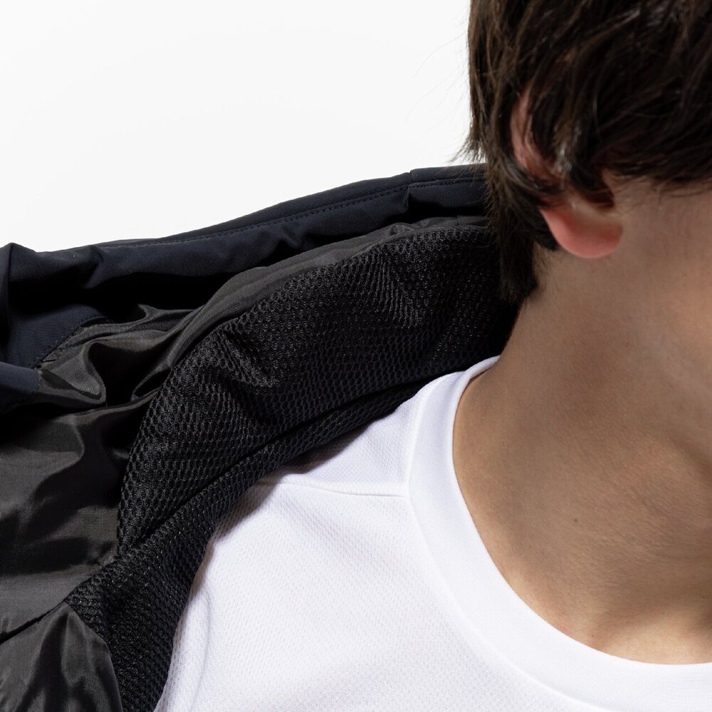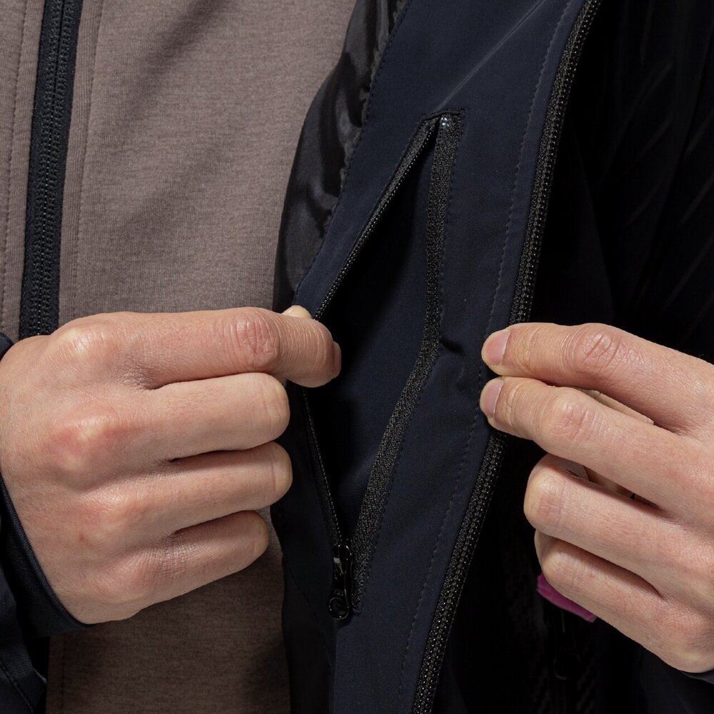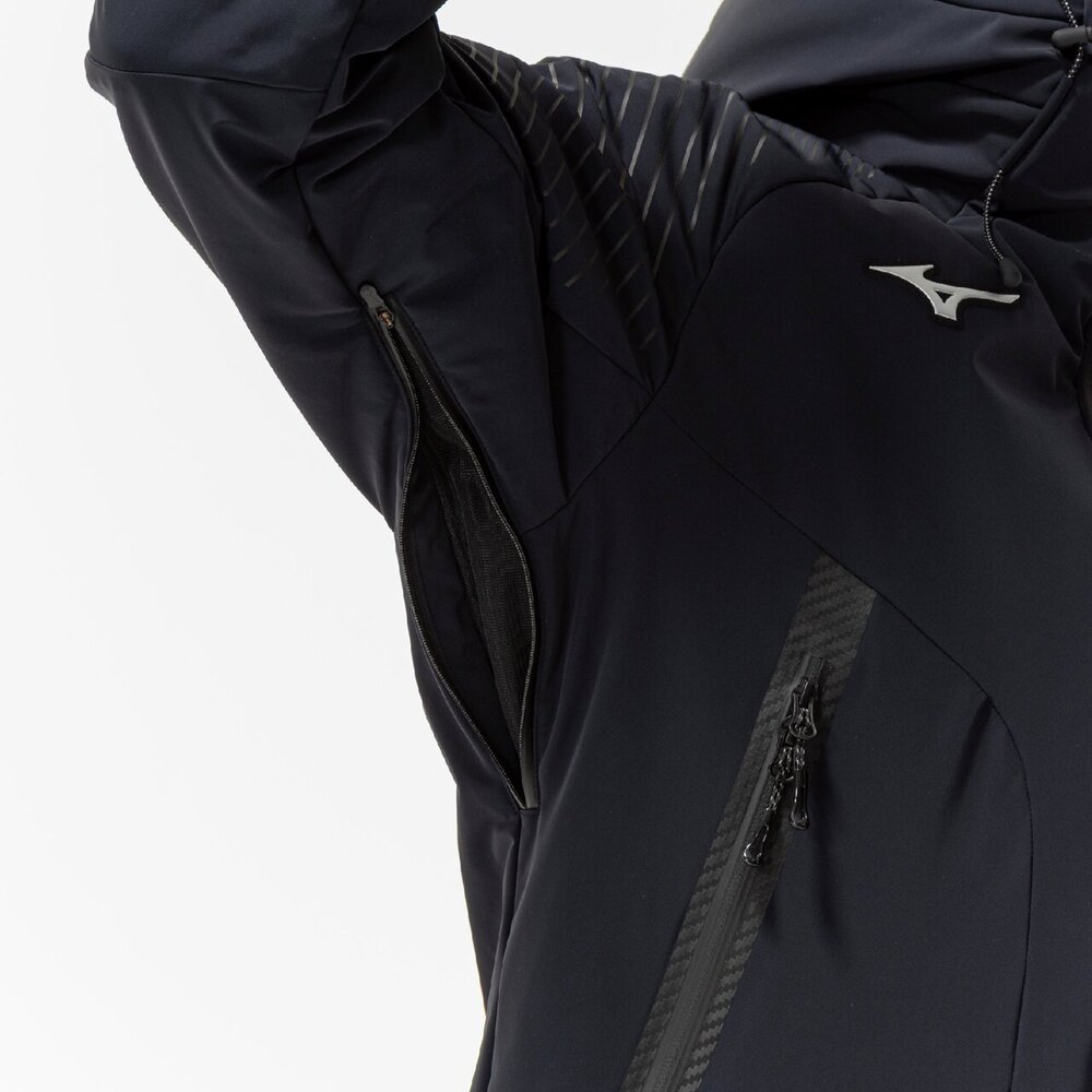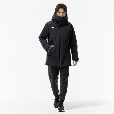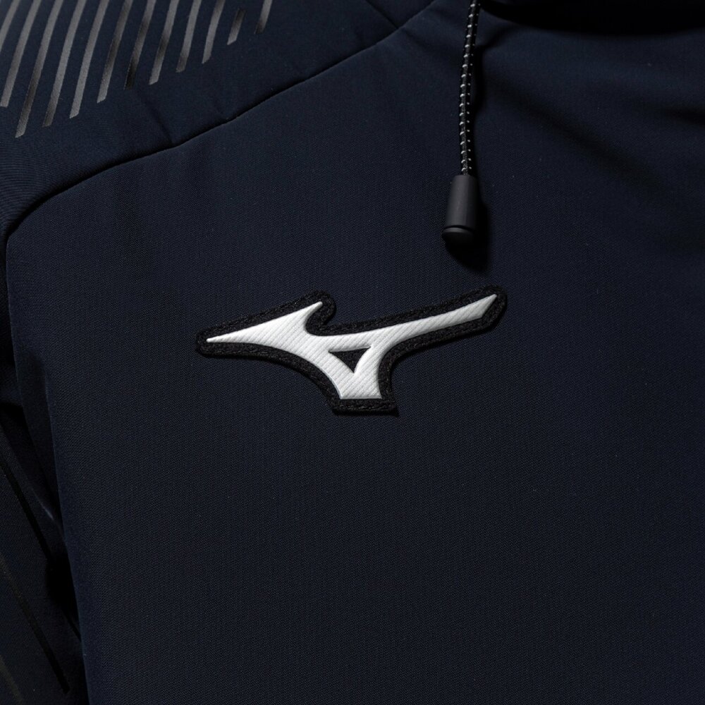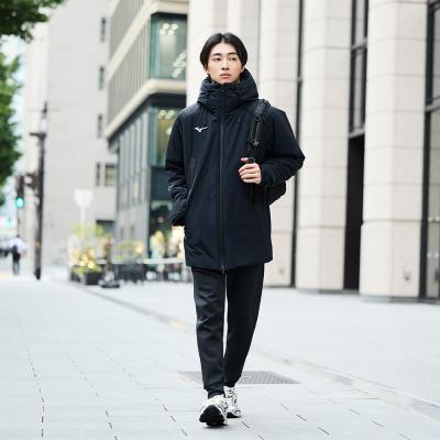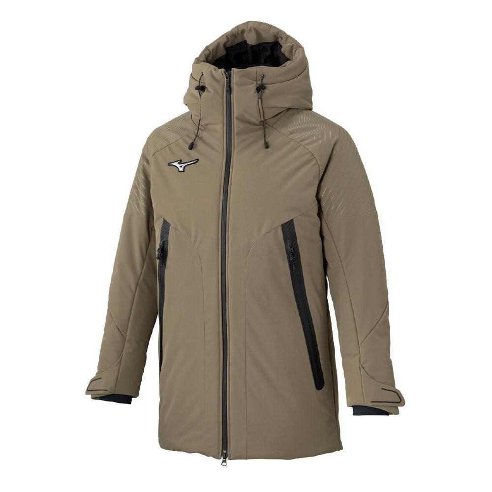 | 素材 | 表地、本体・フード:ナイロン85%、ポリウレタン15% 内衿・フード裏:ポリエステル100% 裏地:ポリエステル100% 中綿、本体:ポリエステル83%、合成繊維(ブレスサーモ)17% フード、内衿:ポリエステル100% インナーカフス部:ポリエステル92%、ポリウレタン8% |