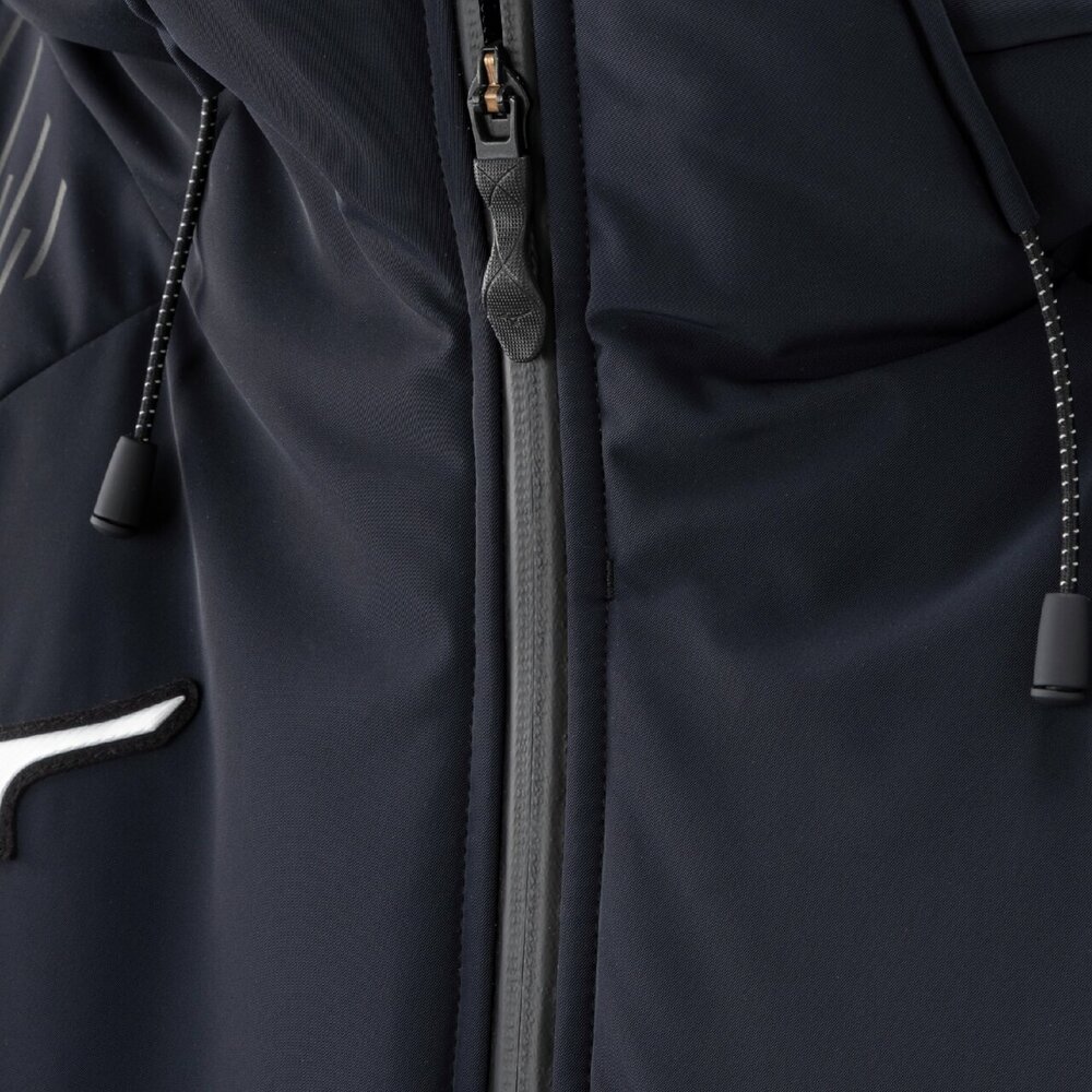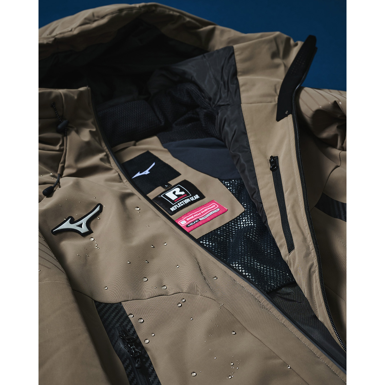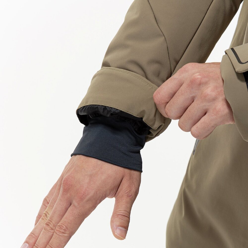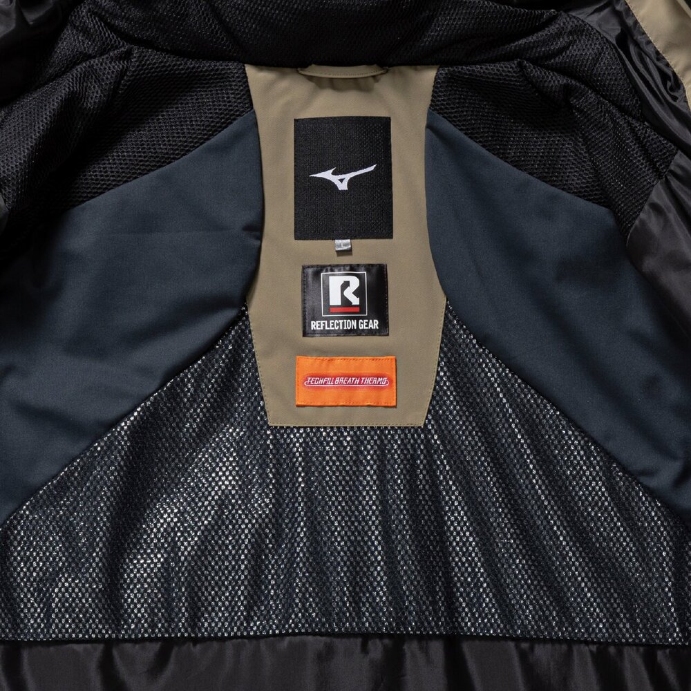 ■テックフィルブレスサーモ=疎水加工を施したブレスサーモを使用し、雨や汗でのへたりや保温性低下を軽減。