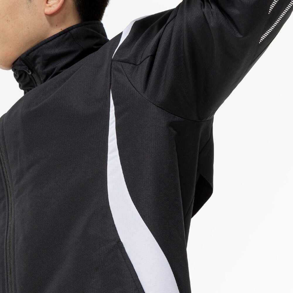 防風性が優れていることを示し、風の進入を防ぎ、ウエア内を快適な状態に保ちます。