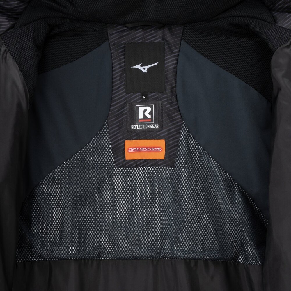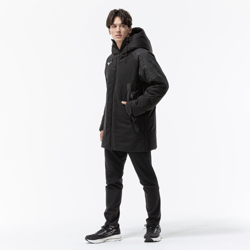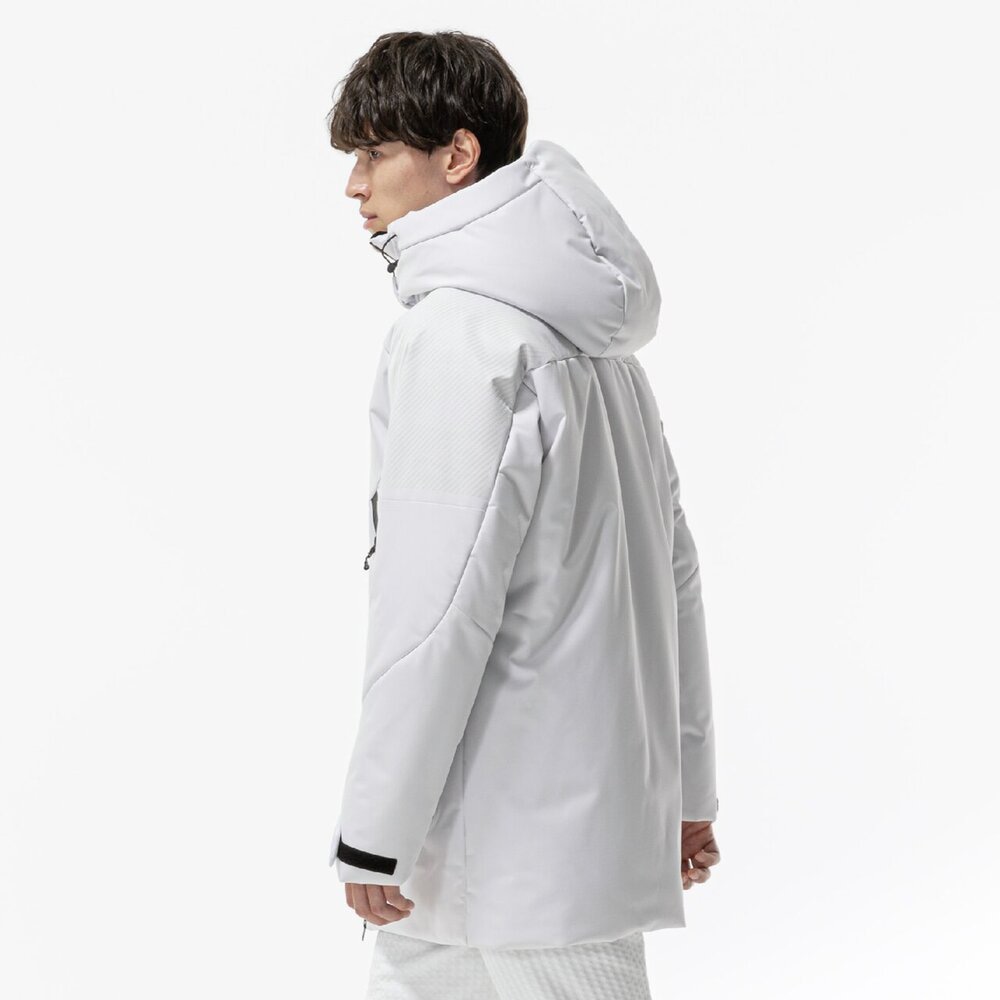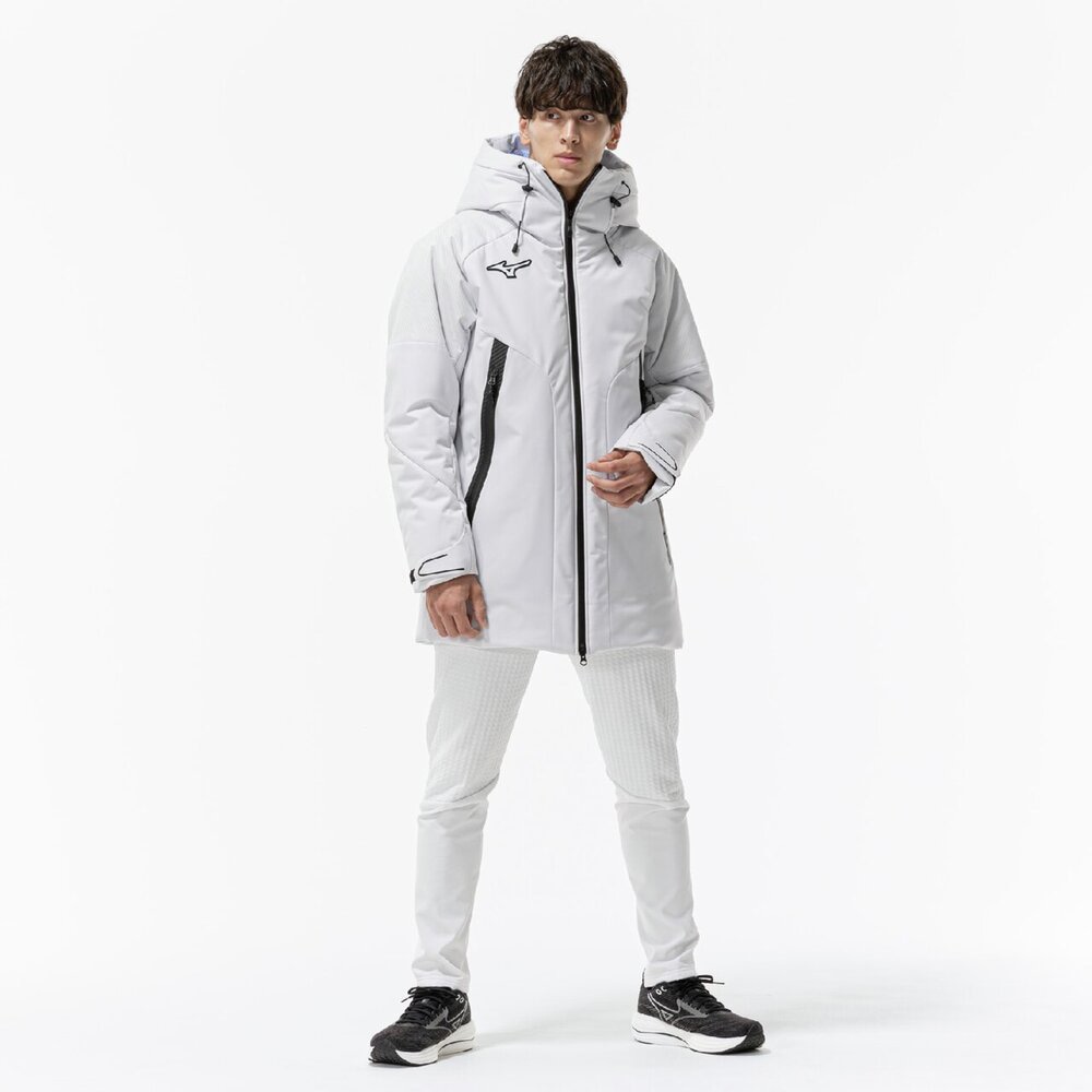 | 素材 | 表地、本体:ポリエステル100% 内衿:ポリエステル100% 裏地:ポリエステル100% 中綿 本体:ポリエステル79%、アクリレート(ブレスサーモ)21% フード、内衿:ポリエステル100% インナーカフス部:ポリエステル92%、ポリウレタン8% |