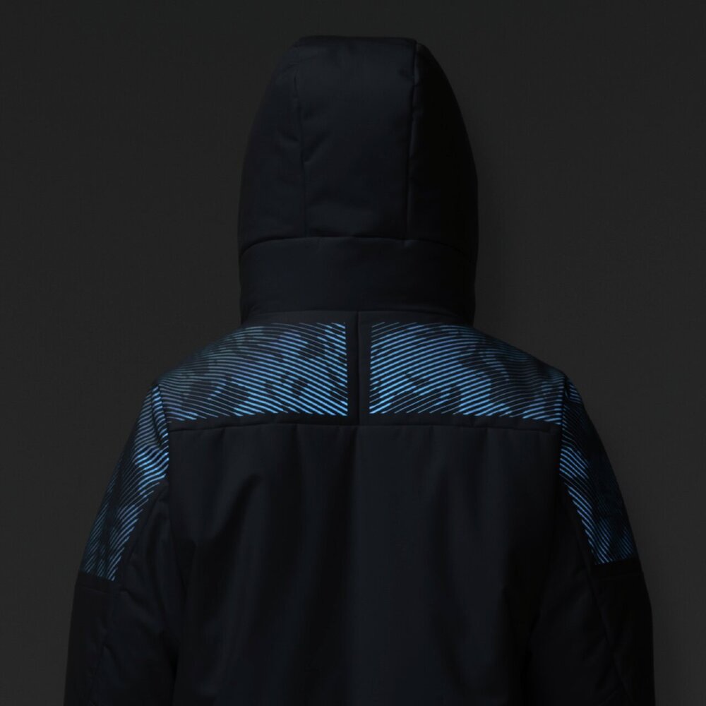 ■表地には20洗耐久撥水の防風ラミネート素材を採用。リフレクションギア裏地仕様。