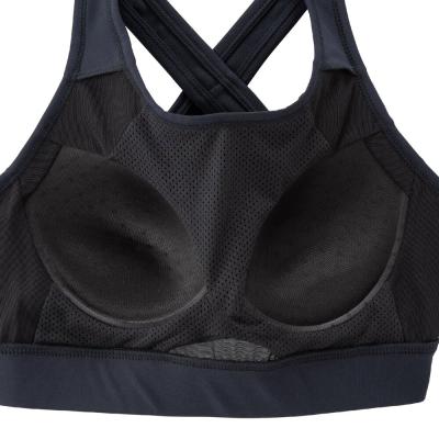 ■バストまわりの衣服圧に着目し、バストをしっかりと体に密着させるように圧力がかかる設計のハイサポートタイプのスポーツブラが運動時バスト全体をサポート。