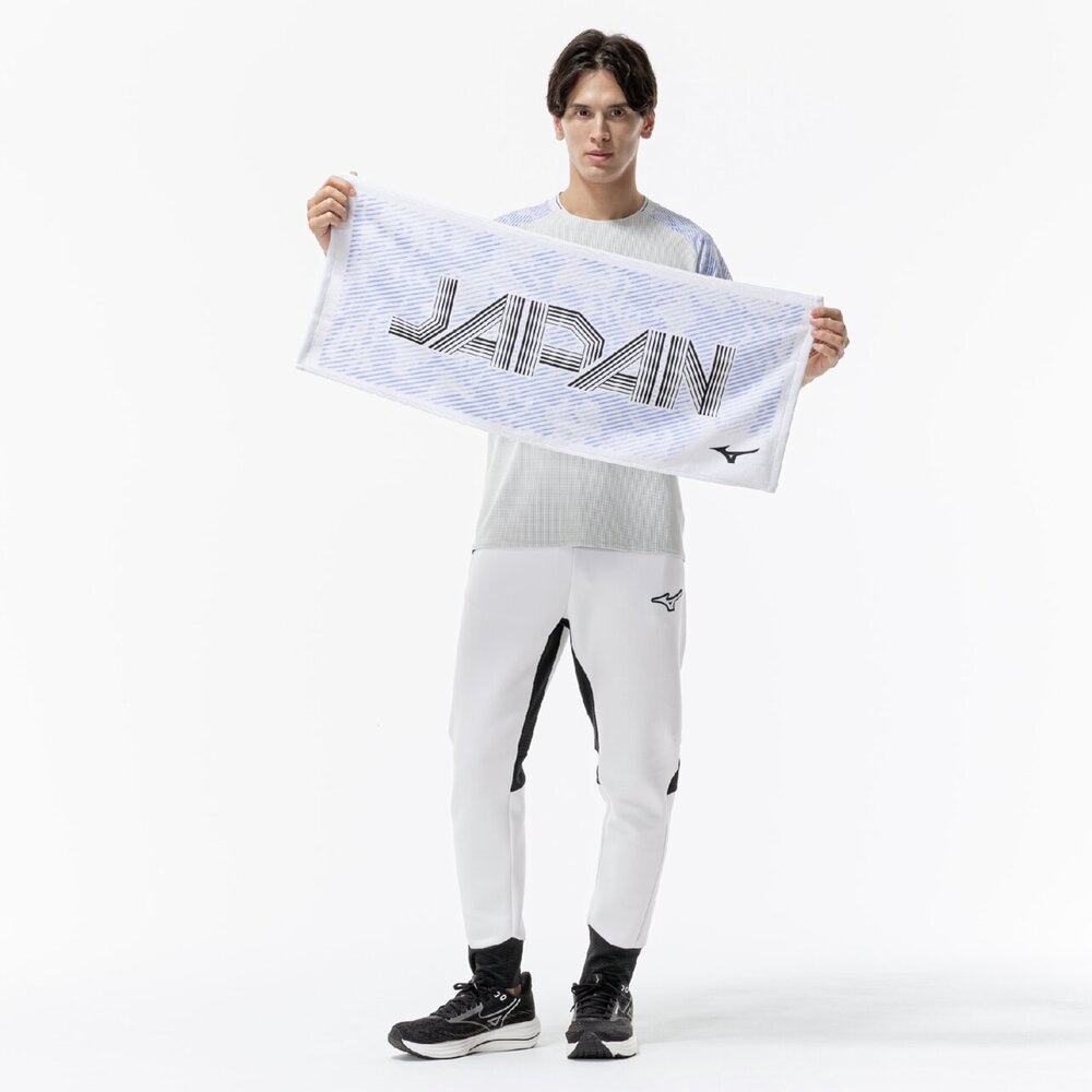 ■スポーツシーンにマッチするグラフィックプリントと吸水性のあるタオル。