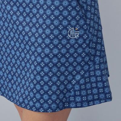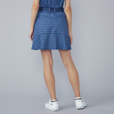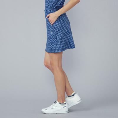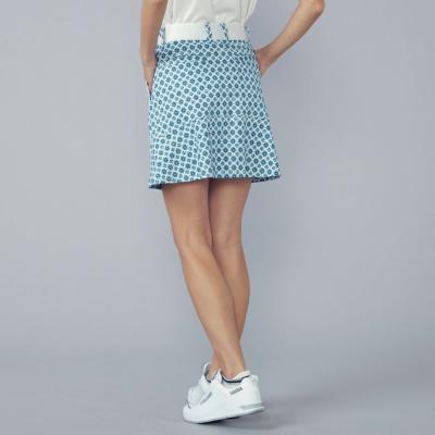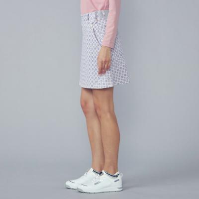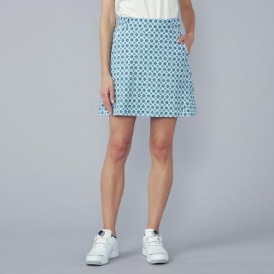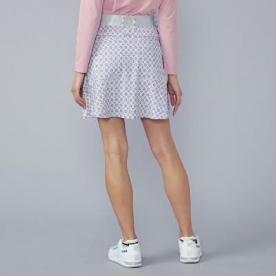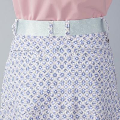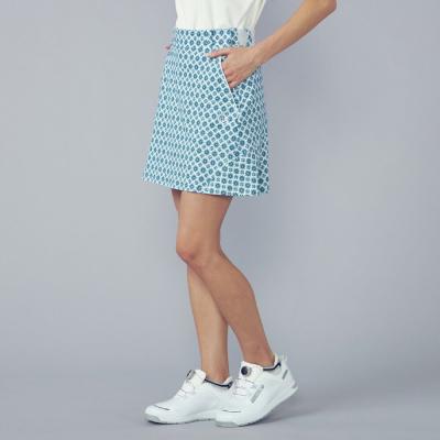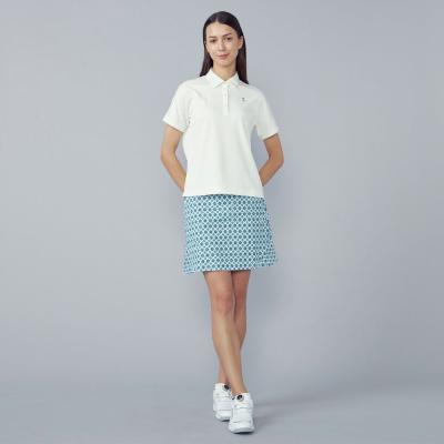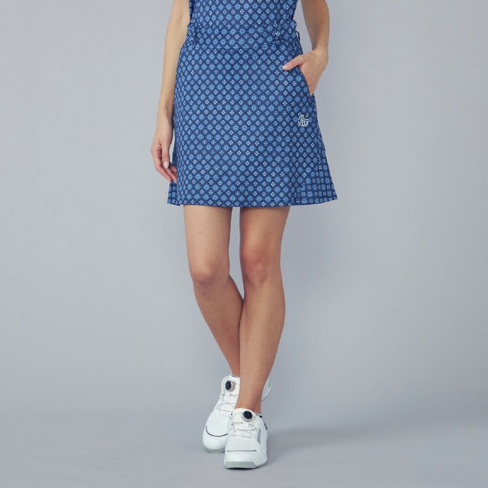 UPF50+でUVカット性に優れた素材を使用し、ウエストゴム仕様で着脱もスイングもしやすい設計。身体にほどよくフィットしてソフトタッチな着心地と【MGFコレクション】ラインストーンエンブレムのワンポイントデザインが美しいニットスカートです。