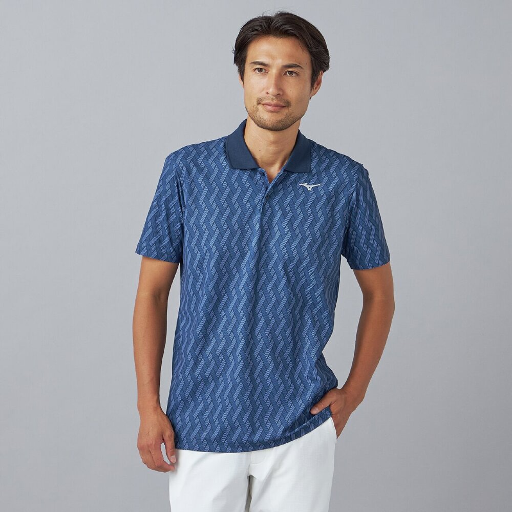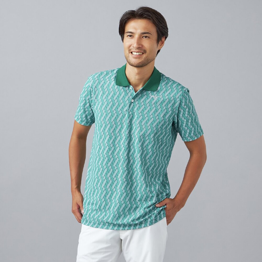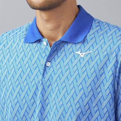 幾何学模様の中にmizunoロゴが散りばめられたデザイン。夏のゴルフでも映える爽やかなカラーリングです。