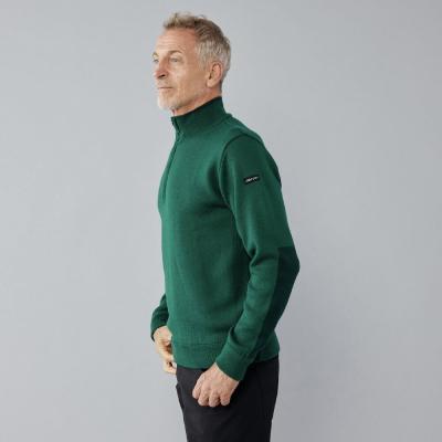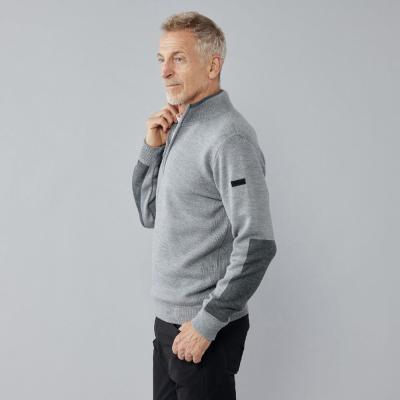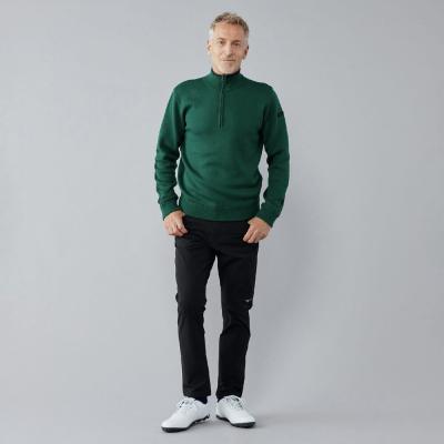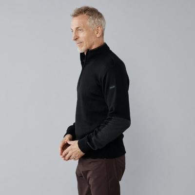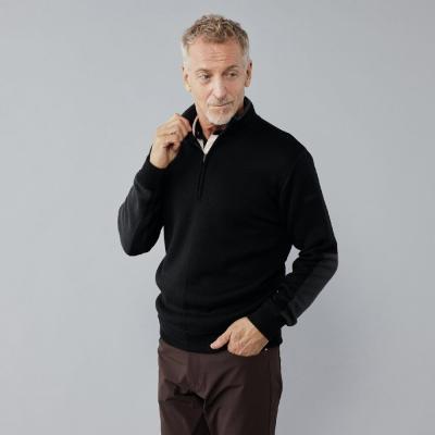 スポーティーでクラシカルなデザインのハーフジップアップセーター。