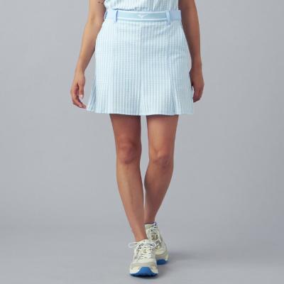 ウエストにミズノロゴをストレッチパーツで表現したポリエステルヤーンのニットスカート。巧みに変化させた編地と構造で快適な立体シルエットに仕立てた、コーディネートを華やかに見せてくれるアイテムです。