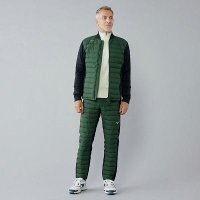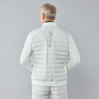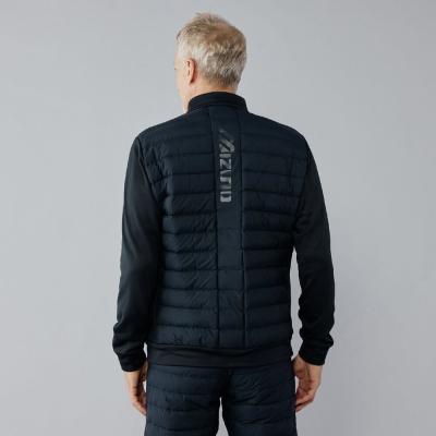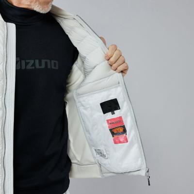 | 素材 | 本体 表地:ナイロン100% 裏地:ナイロン100% 中綿:ダウン90%、フェザー10% ニット部:ポリエステル85%、ポリウレタン15% 後身頃上部芯地:合成繊維(ブレスサーモ)65%、ナイロン35% |