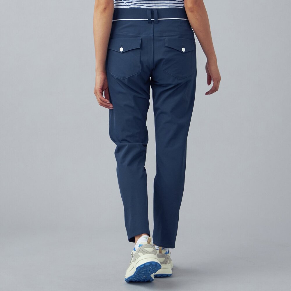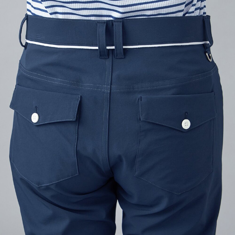 加工により細やかなシワ感がストレッチ性を合わせて動きやすくゴルフにも日常にも使いやすいシルエットのロングパンツです。
