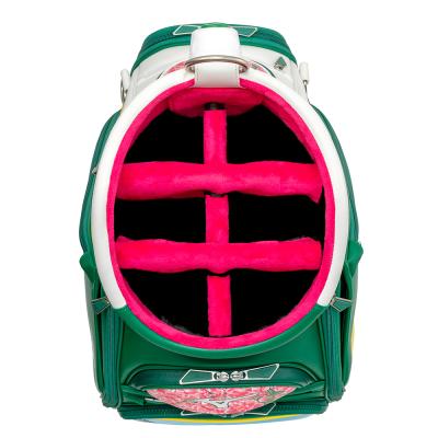 その象徴的なマスターズカラーのグリーンを基調としたキャディバッグに仕上げました。