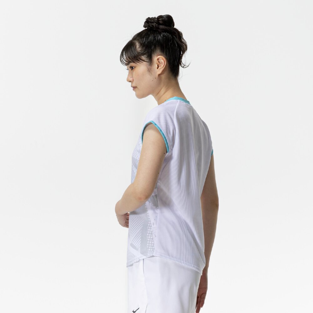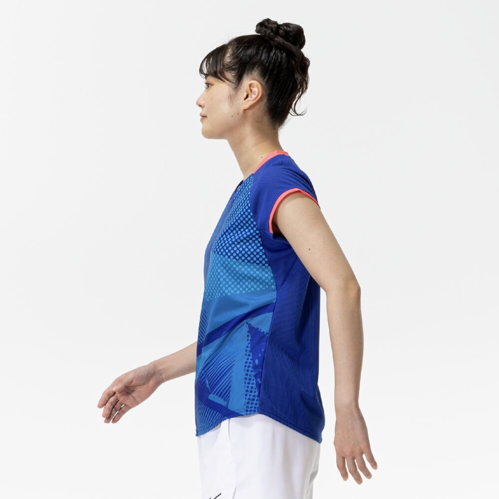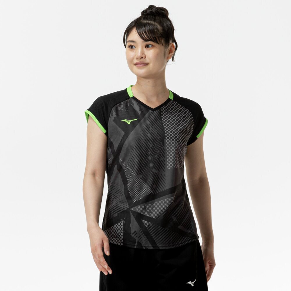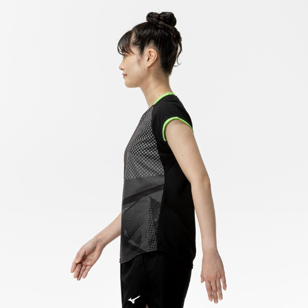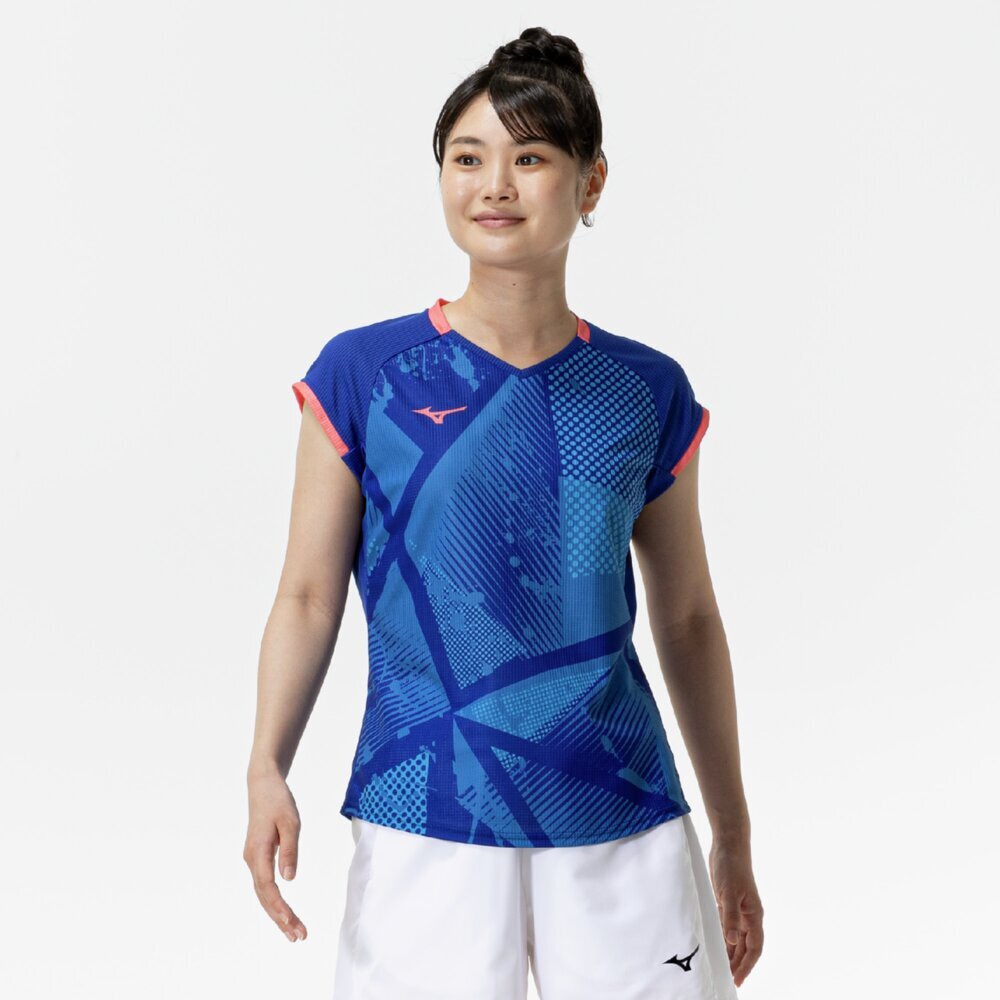 ■トレンド感のあるグラフィックでデザインに奥行きをプラス。襟周りや袖先のアクセントカラーで華やかな印象に。