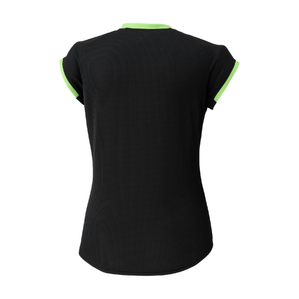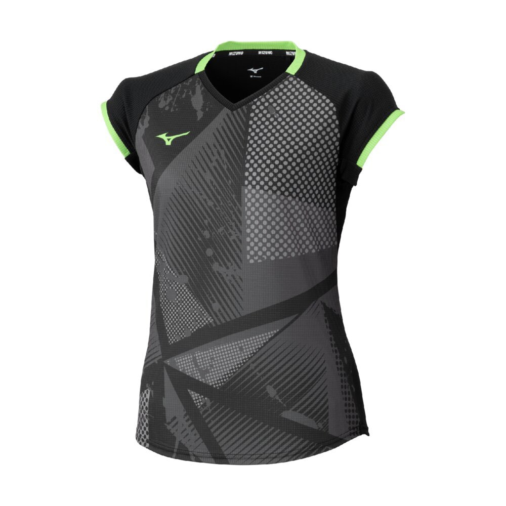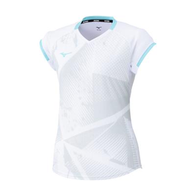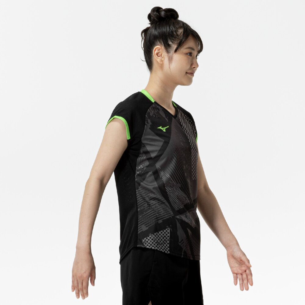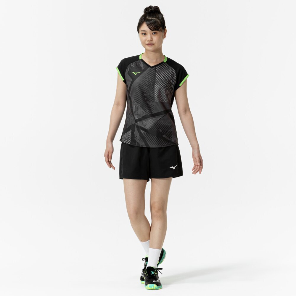 ■トレンド感のあるグラフィックでデザインに奥行きをプラス。襟周りや袖先のアクセントカラーで華やかな印象に。