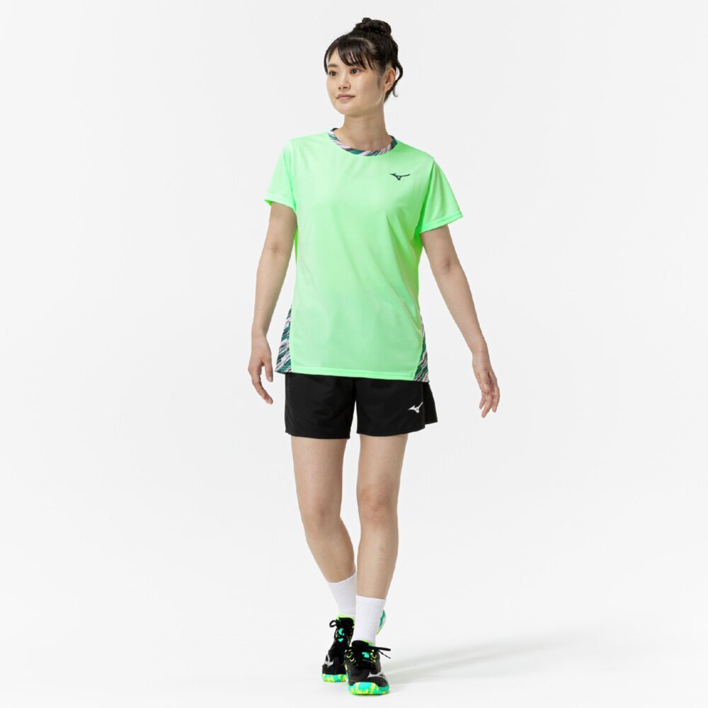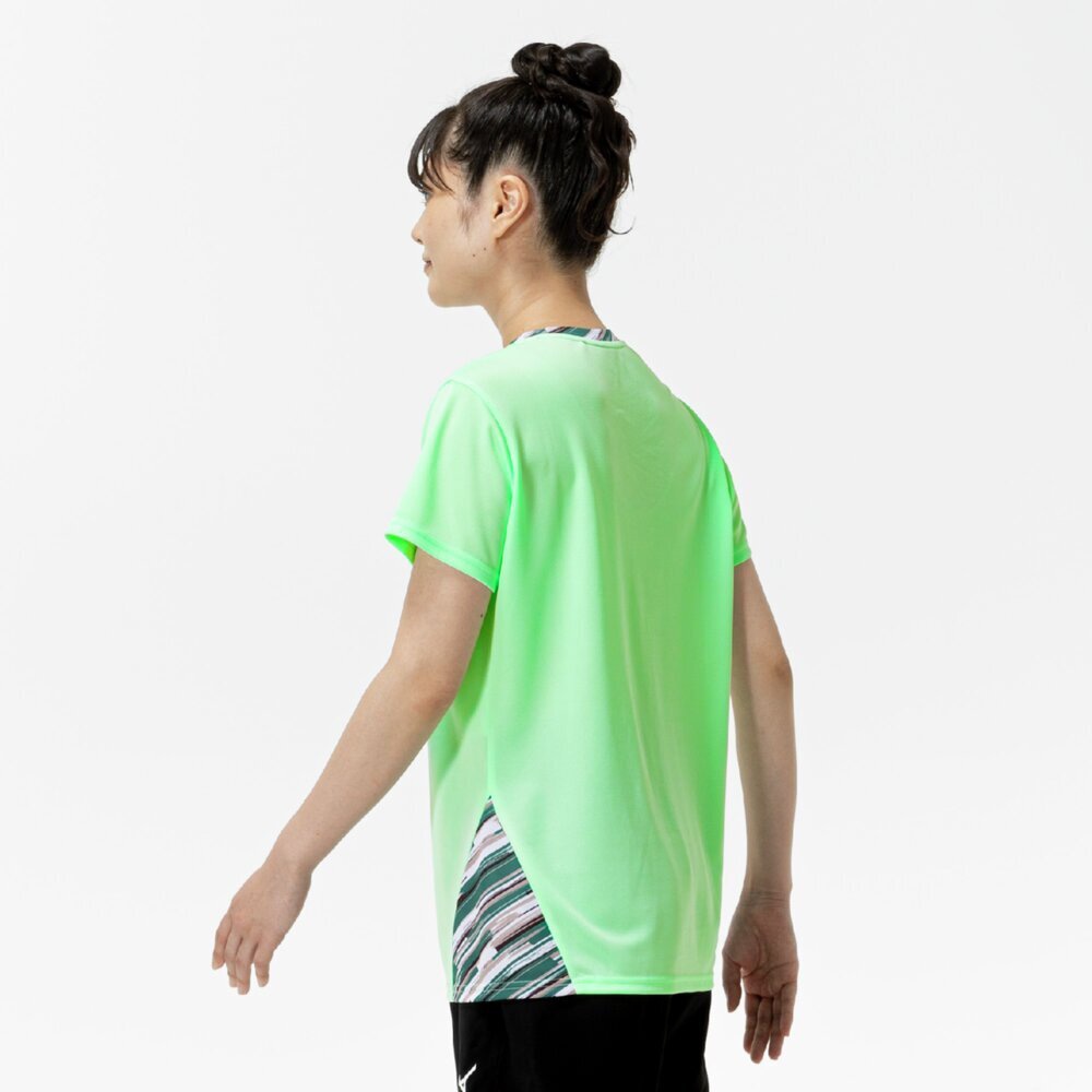 ■鮮やかなカラーをベースに、襟元とサイドにインパクトのある柄をデザインする事でウェア全体を華やかな印象に。