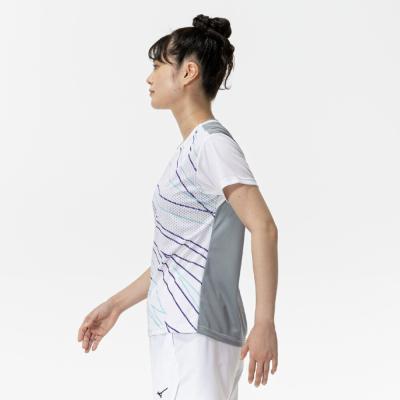 ■前身は力強いラインにドット柄を重ねてダイナミックな動きを演出。後身には濃色を配置しできるだけ透けの少ないウェアに。