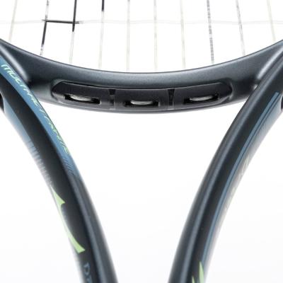 ストリング穴を長方形にすることで、打球時にストリングが動き球持ちが向上し、オフセンターの不快な衝撃を抑制してスイートエリアを拡大する。