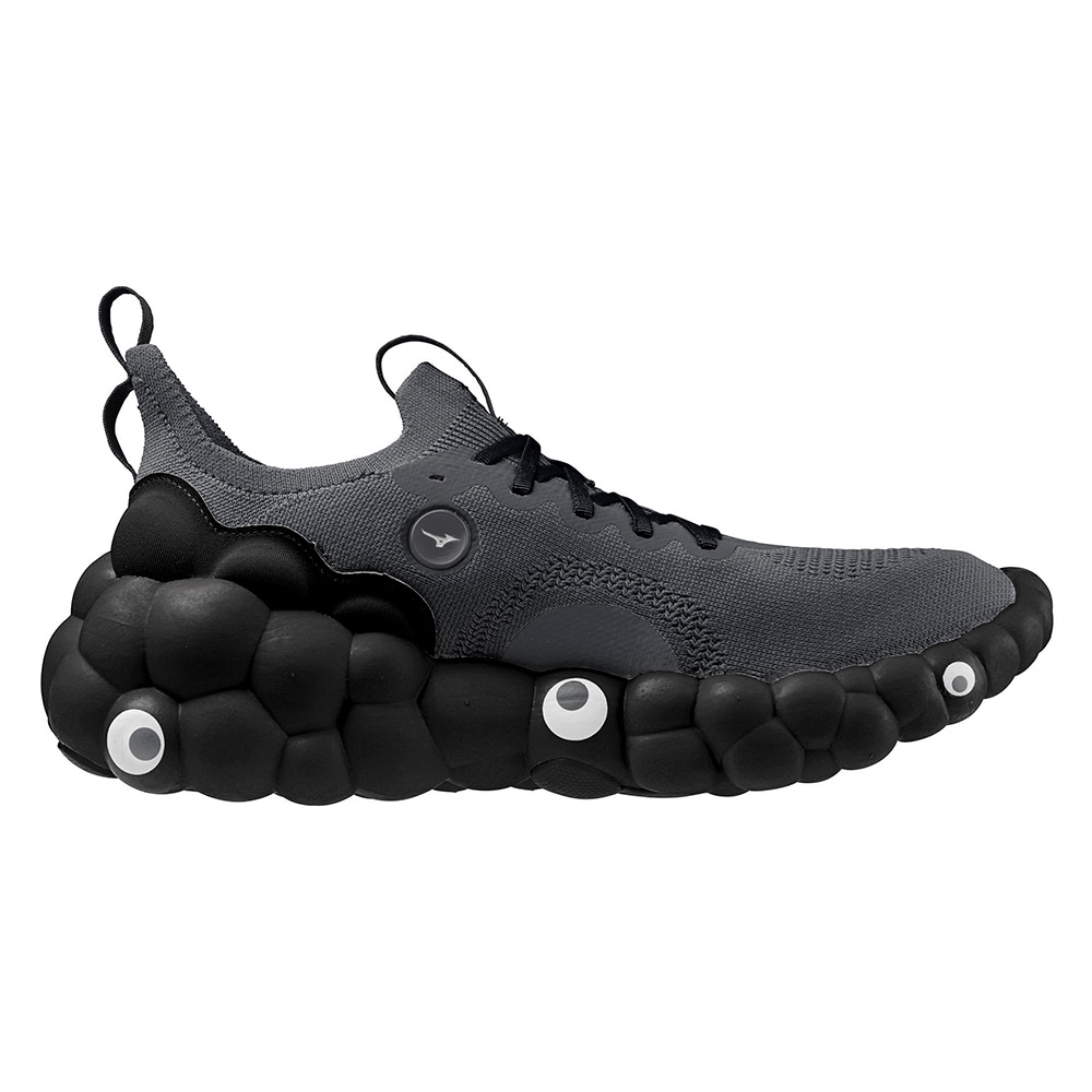 ミッドソールの凹凸感とミャクミャクの目玉が特徴的なシューズ。