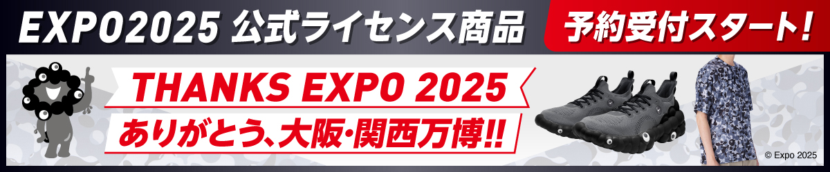 ミャクミャクをイメージした、ミッドソールの凹凸感が特徴的なシューズです。