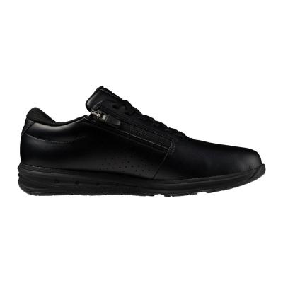 脱ぎ履きが容易に出来るファスナーは目立ちにくく、アッパーと同色で、内甲に備えています。