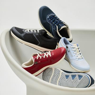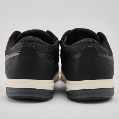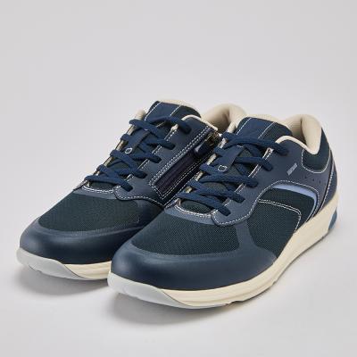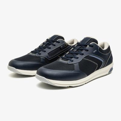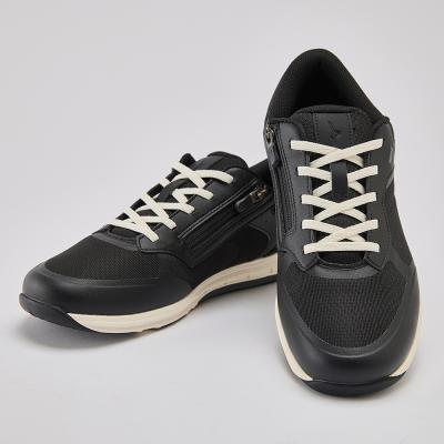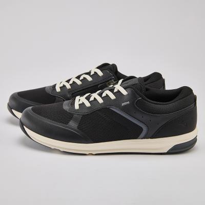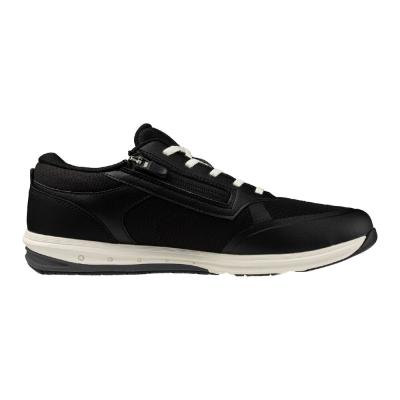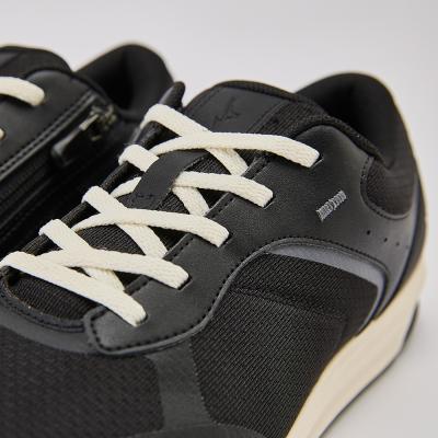 また、濡れた路面でも滑りにくいラバー素材、脱ぎ履きが容易に出来るファスナーを目立ちにくくアッパー同色で内甲に備えているのも特徴です。